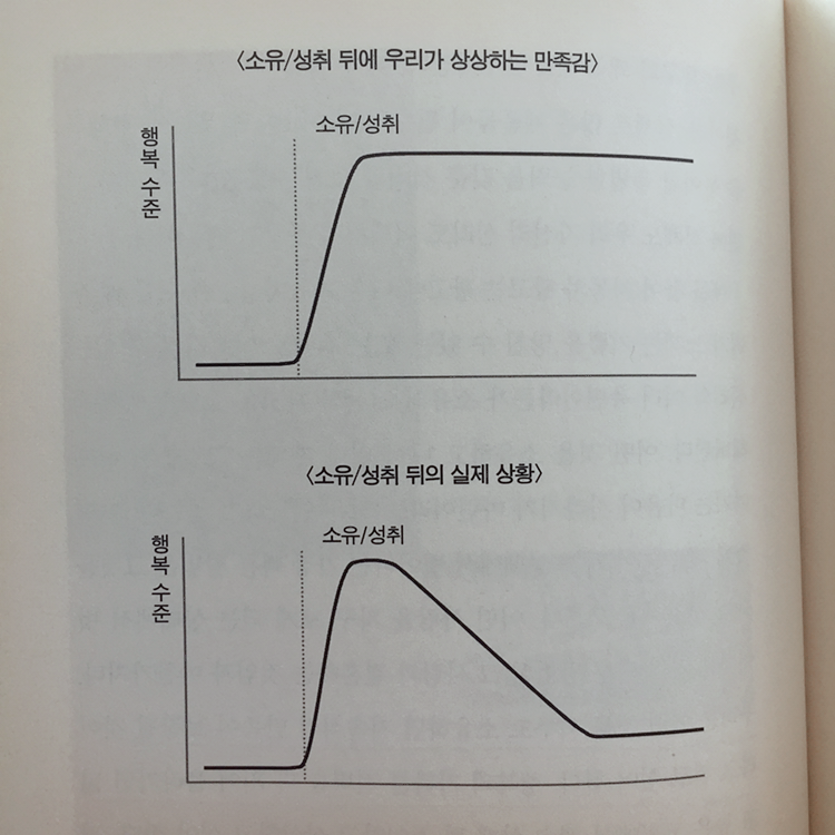 우리는 어떤 것을 이루고 소유하면 지속적인 만족이 보장될 것이라고 믿고 싶어 한다. 행복의 가파른 절벽을 다 기어 올라가면 넓고 높은 고원에서 계속 살게 될 것이라고 상상하고 싶어 한다. 정상에 오르면 곧 불안과 욕망이 뒤엉키는 새로운 저지대로 다시 내려가야 한다고 말해주는 사람은 드물다.
