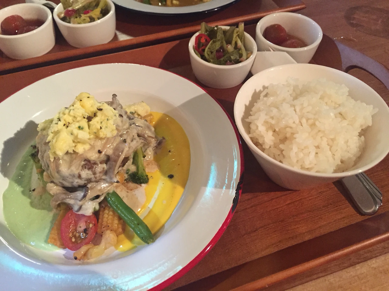 함박스테이크에 곁들여진 열무피클이 신기한데다 새콤달콤하고 맛있었다. 함박스테이크 고기도 실하고 식감도 좋았음. 그리고 내가 좋아하는 버섯과 계란과 크림 소스도 듬뿍.