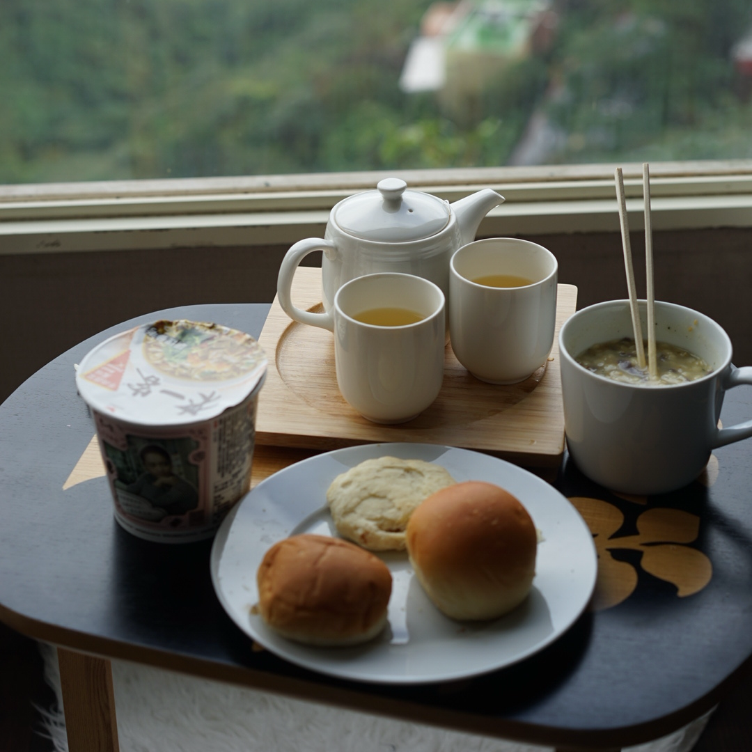 입구 층에 있던 우리 숙소방. 입실하자마자 통유리 창 밖의 안개 자욱한 광경이 보이는 게 몽환적인 기분이 들어서 너무 좋았다.