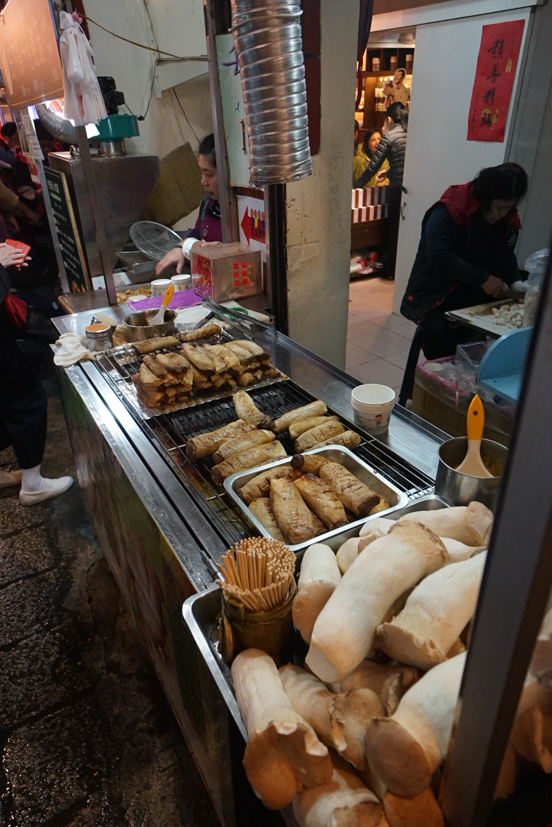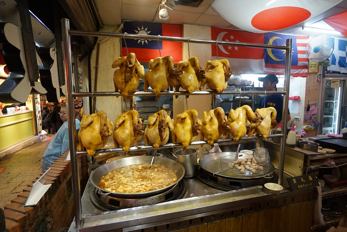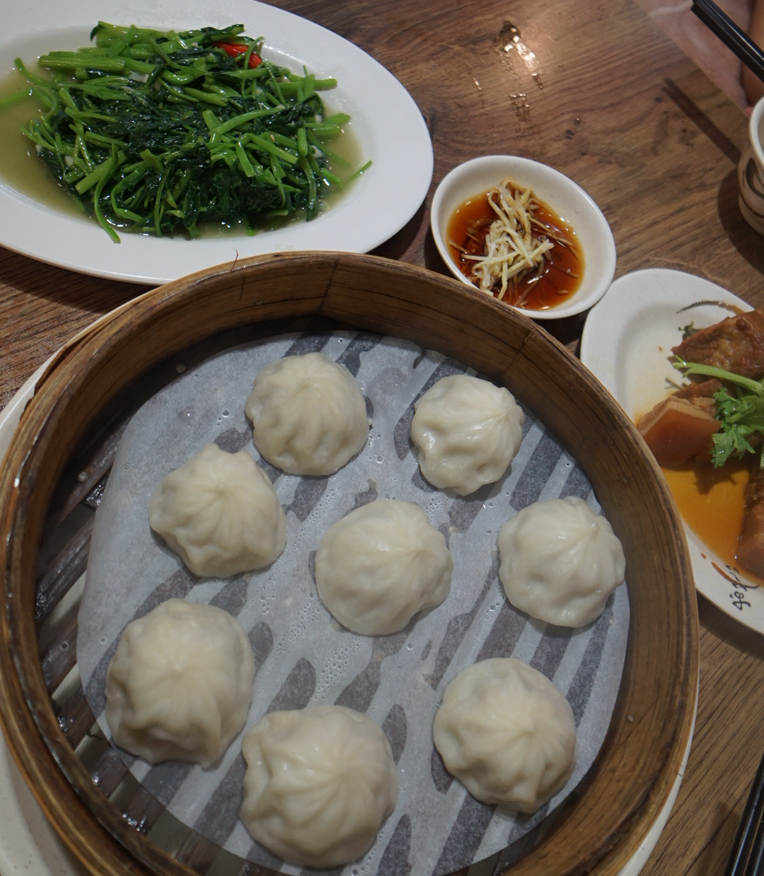 도착한 오후에 잠깐 숙소에서 쉬다가 (이 복작복작한 길을 캐리어를 들고 이동하는데 힘들었으므로 -_-) 이른 저녁을 먹으러 나왔다. 올드 스트리트 끝나는 쪽(숙소 가까운 쪽)에 있는 닭인가 오리인가가 주렁주렁 걸려있는 큰 가게가 그럴 듯해 보여서 들어가봄. 소룡포와 나물요리, 동파육을 먹었는데 딱 관광지의 맛 ㅋㅋ 평범한 퀄리티였다.