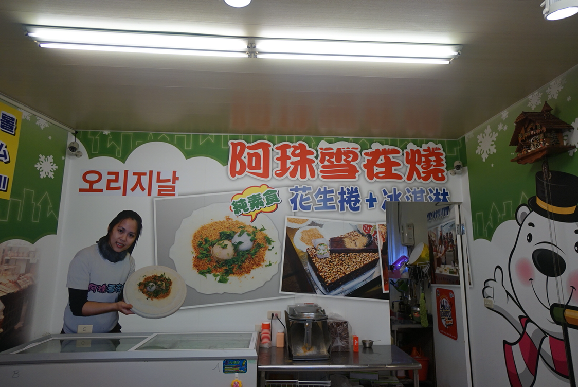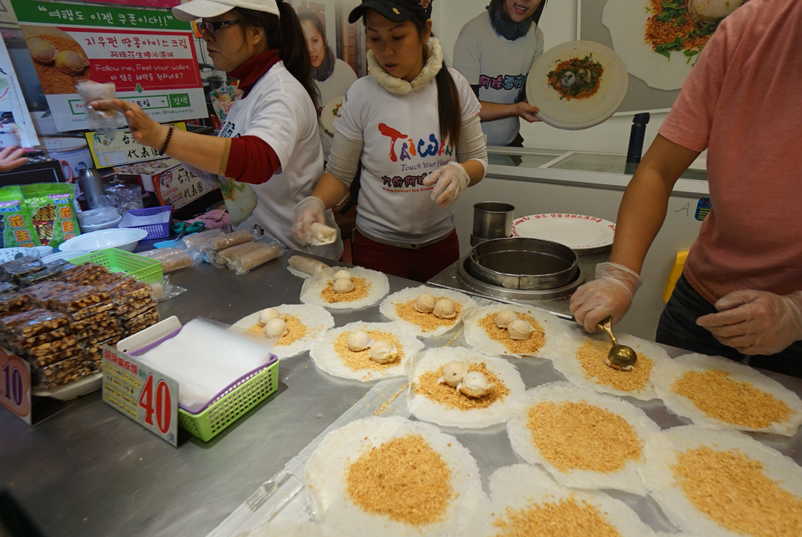 땅콩과 아이스크림을 전병에 말아먹는 땅콩아이스크림. 맛있는데 나는 한 번 사먹어보면 족할 맛이었음 ㅋㅋ 물론 몇번이고 더 먹고 싶다는 사람들도 있고. 1개에 40대만달러니까 한국돈으로 1500원 정도.