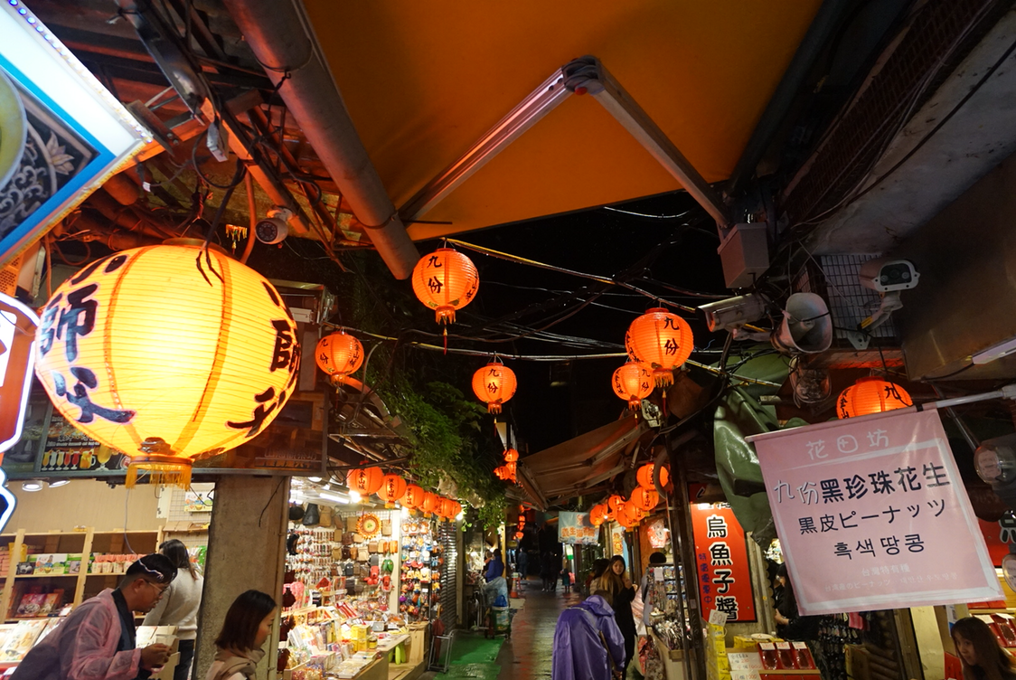 우리나라 사람들은 주로 예스진지 투어를 이용해서(투어로 이동하면 교통도 편하고 일정을 효율적으로 활용해서 구경하기는 좋을 듯!) 낮에는 예류, 스펀, 진과스를 구경하고 해질 무렵 홍등이 켜질 때 지우펀으로 오는 것 같더라. 어두워진 후에 특히 한국인 단체 관광객들이 많이 보였다.