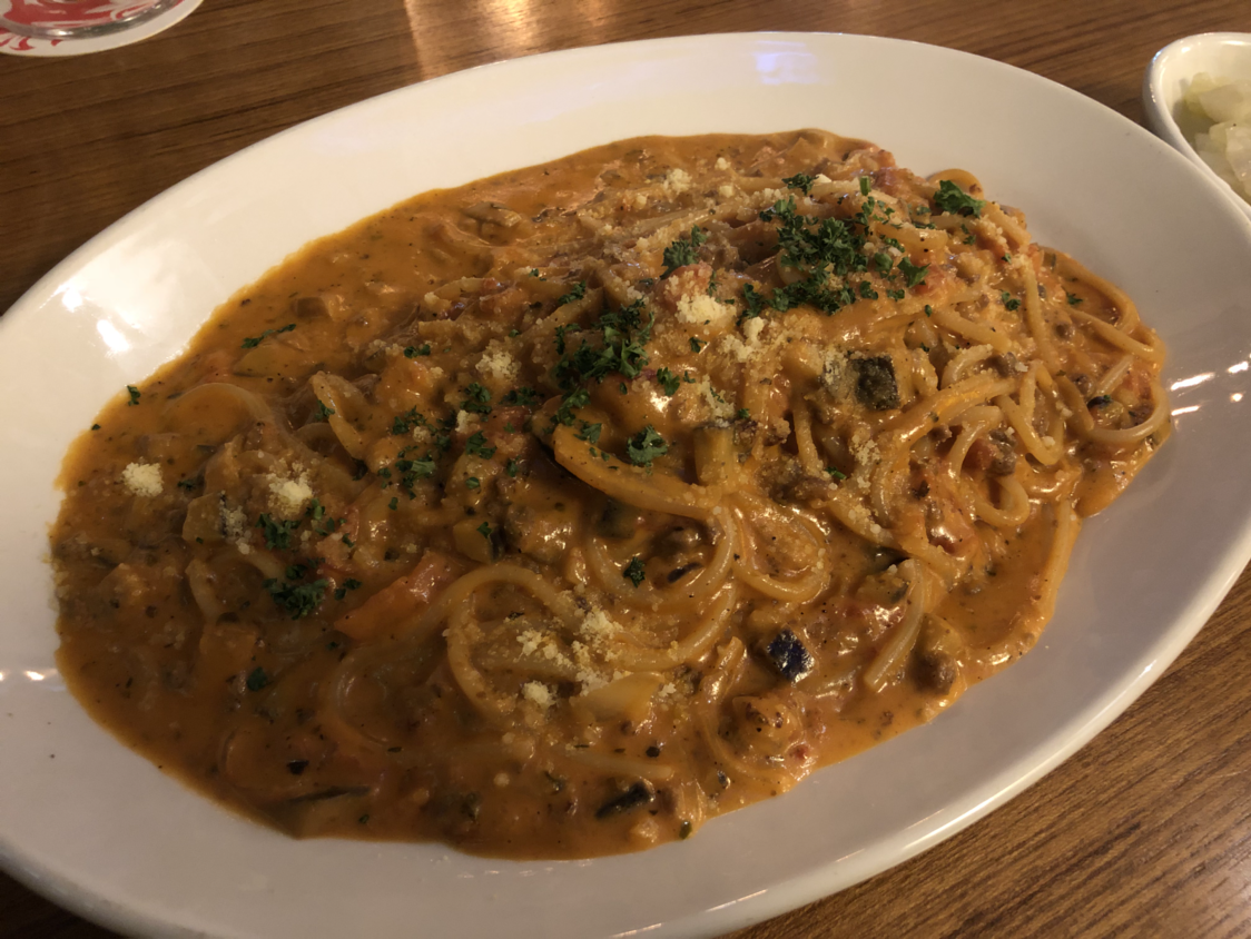 라구파스타 좋아하기도 하고, 아메리칸 라구파스타는 뭘까 궁금해서 시켜본 메뉴. 보통 라구소스처럼 다진고기가 들어간 건 맞는데 국물이 바짝 졸여진 보통의 라구소스보다는 걸죽한 국물도 있고, 로제소스 같기도 한크리미한 맛이었다. 크리미한 라구파스타라니 어메리칸 라구파스타라는 이름에 왠지 고개가 끄덕끄덕.