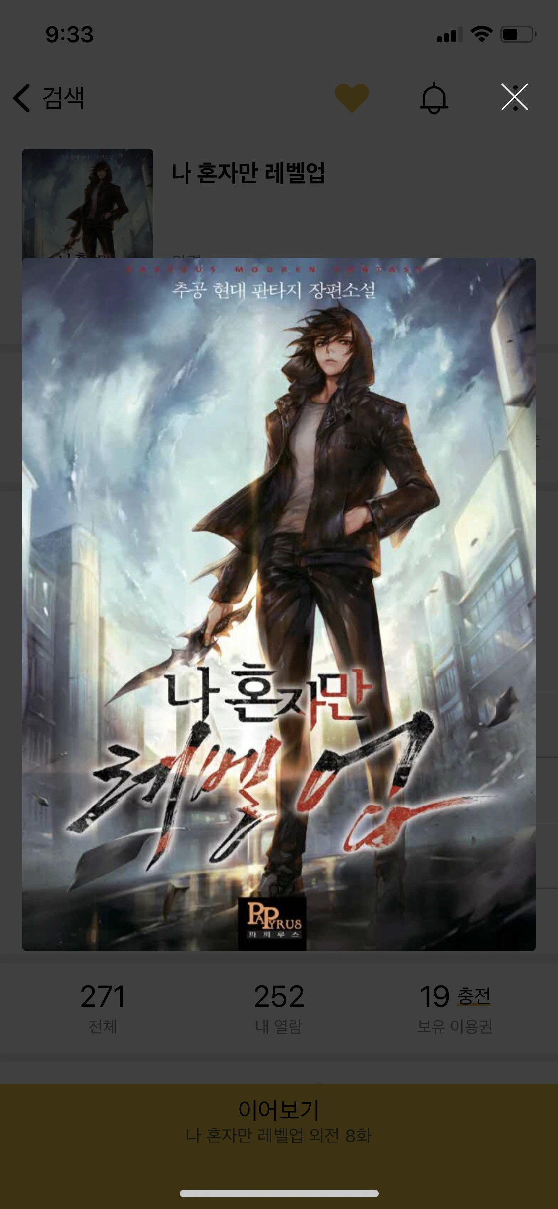 카카오페이지 웹소설 중에서 나 혼자만 레벨 업, 검을 든 꽃 강추. 나는 그림이나 영상보다는, 텍스트라 웹툰보다는 웹소설이 좋다.