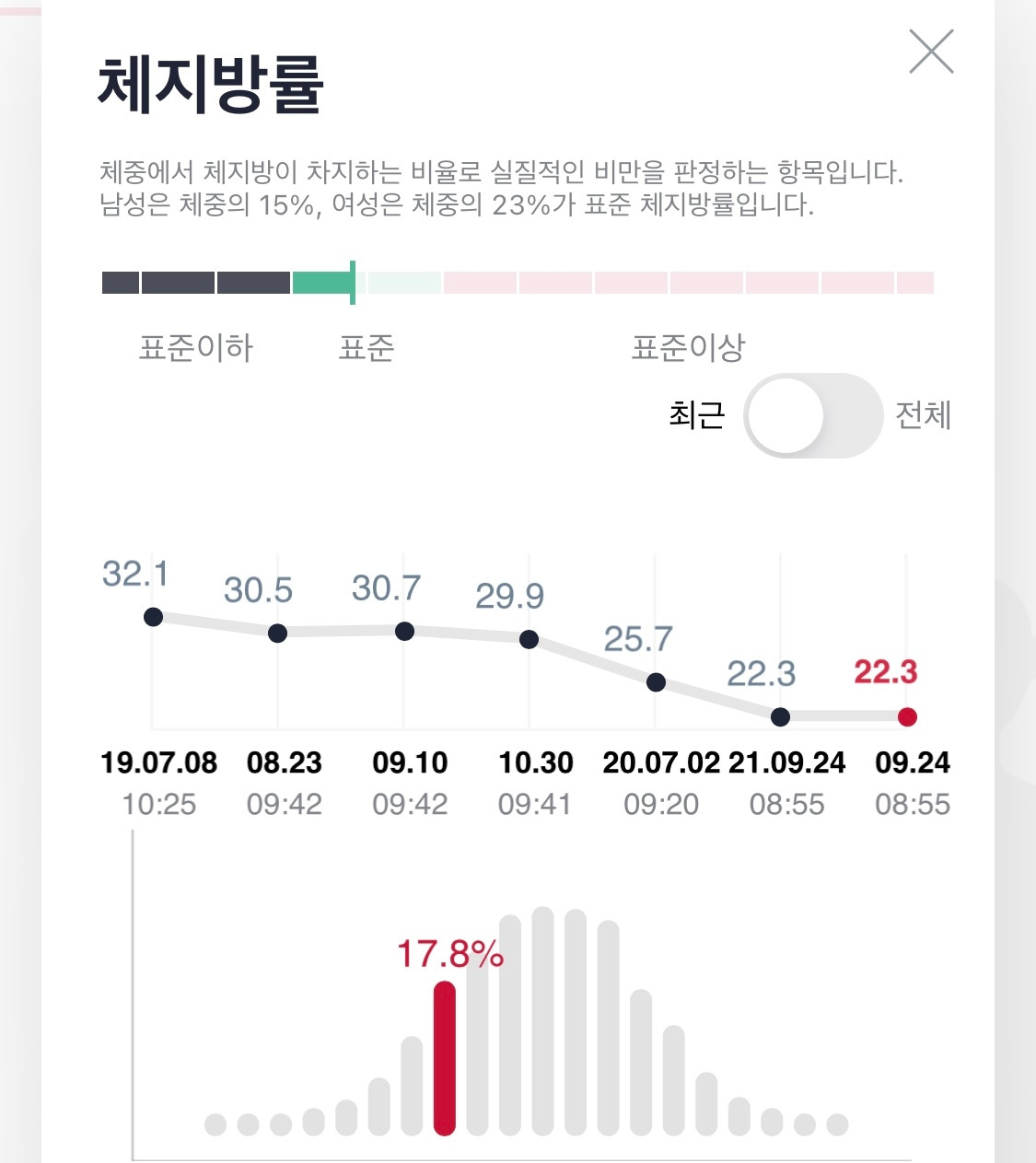 봄부터 달리기 를 시작했다. 일주일에 2번 정도 6km 를 50분씩 달리기를 했는데 (이 속도는 엄청 천천히 뛴다는 것 ㅋㅋ 그래도 천천히 쉬지 않고 달린다.) 재작년 필라테스를 시작하고, 작년에 키노제닉 식단을 꾸준히 유지해서 한동안 줄어들다가 다시 올해 초부터는 정체해있던 체지방율 감량이 달리기 덕분인지 새롭게 진전이 있었다. 달리기 짱짱. 근데 겨울이 되니 도저히 추워서 달리기를 못함 ㅠㅠ