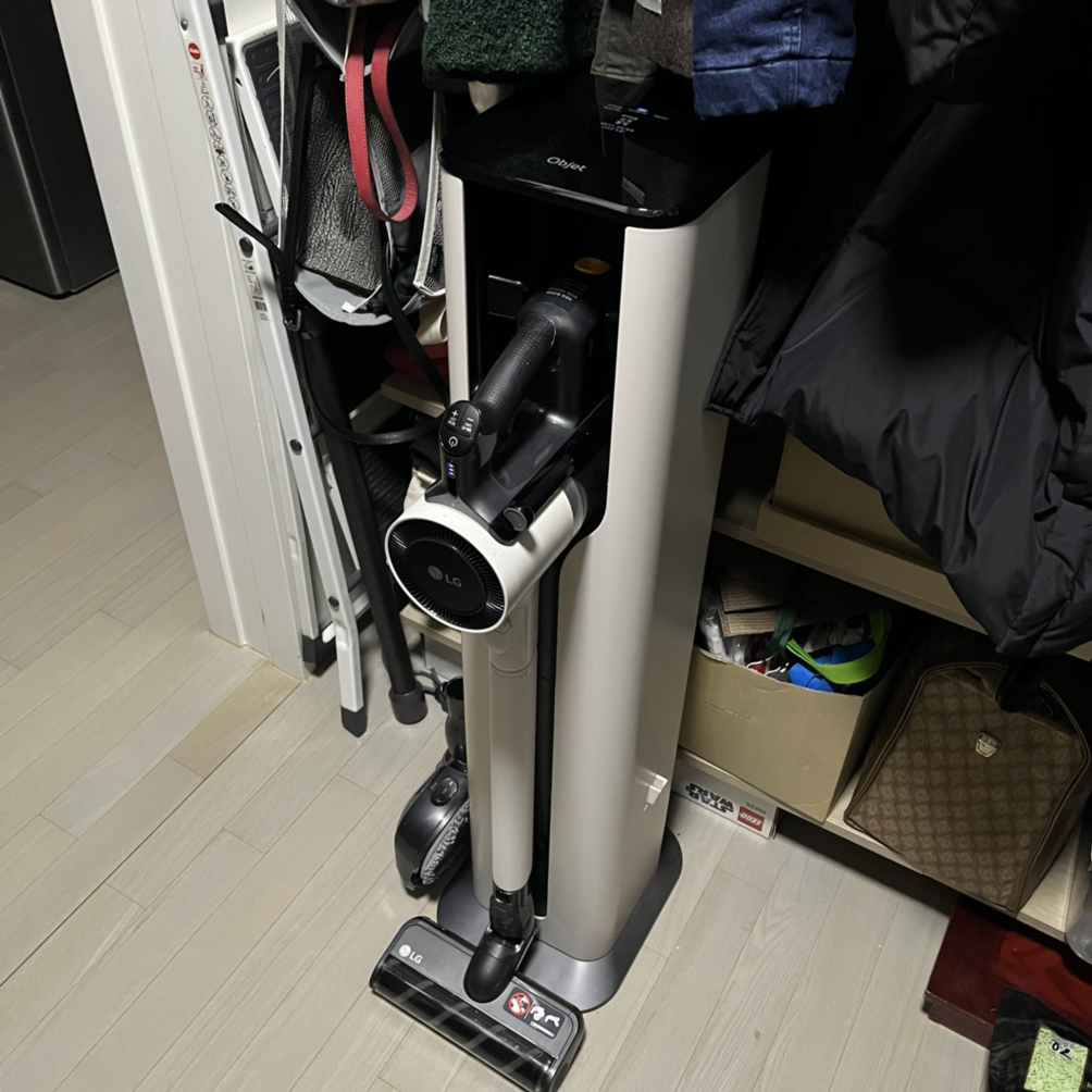 청소기를 올인원타워에 올려놓으면 배터리 충전되고, 먼지통 자동 청소도 되는 것 진짜 좋음. 먼지통 자동 청소 강추강추.