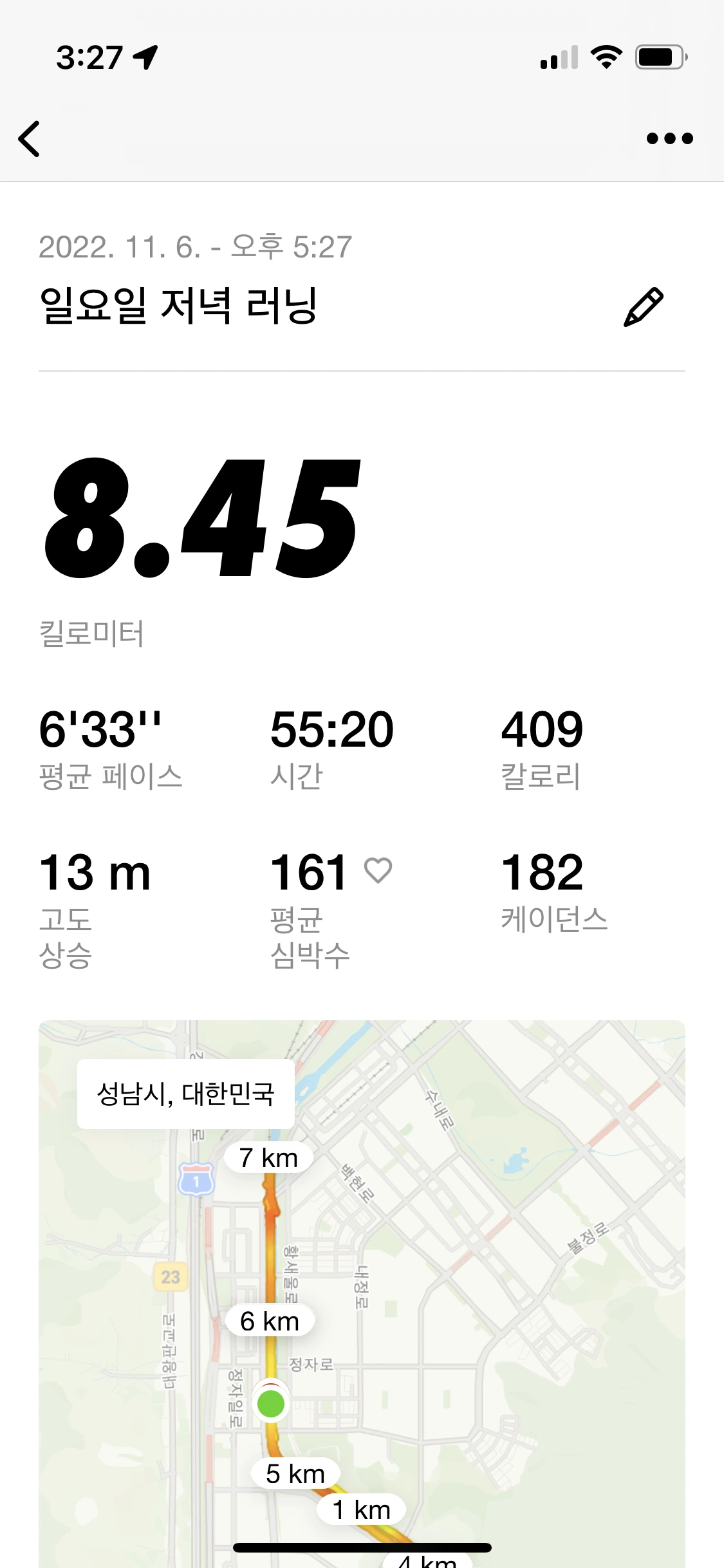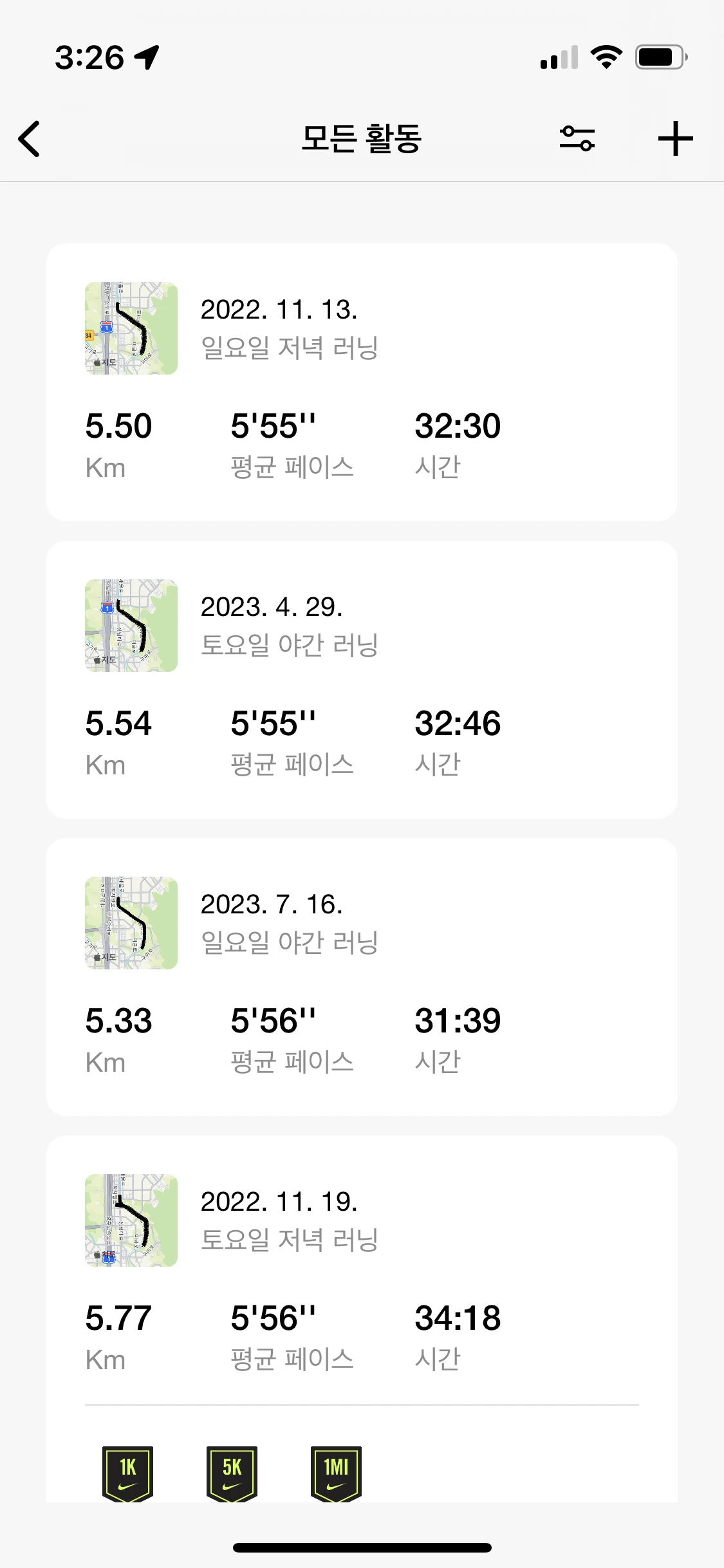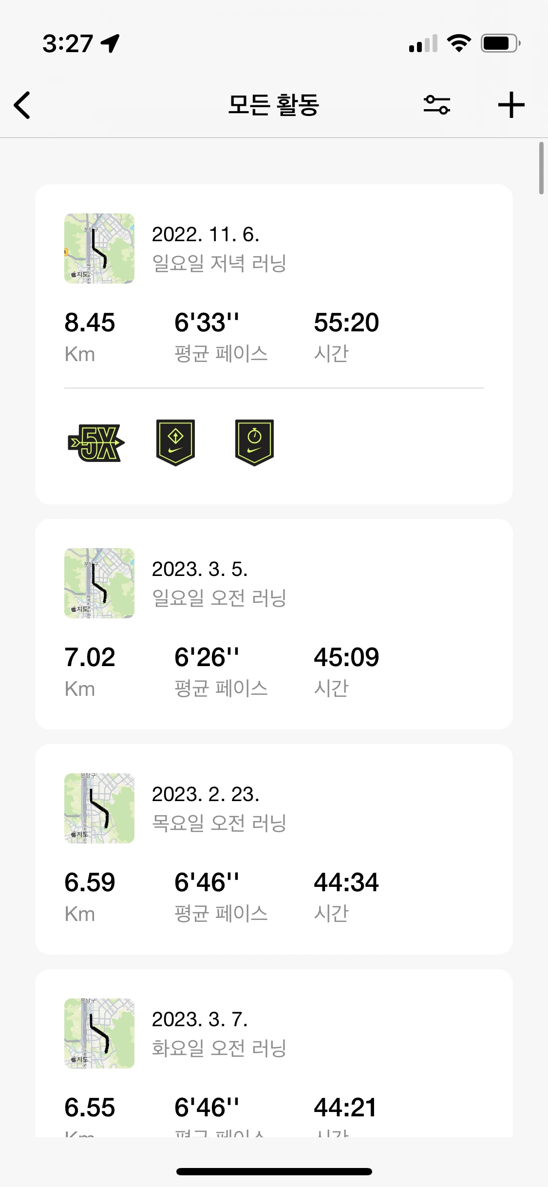 처음 달리기를 했을 땐 1km를 8분에 뛰는 것도 만만하지 않았는데 지금은 6분 언더로 달릴 수 있게 되었다. 매일은 아니고 컨디션이 좋은 날 기준이지만 ㅎㅎ