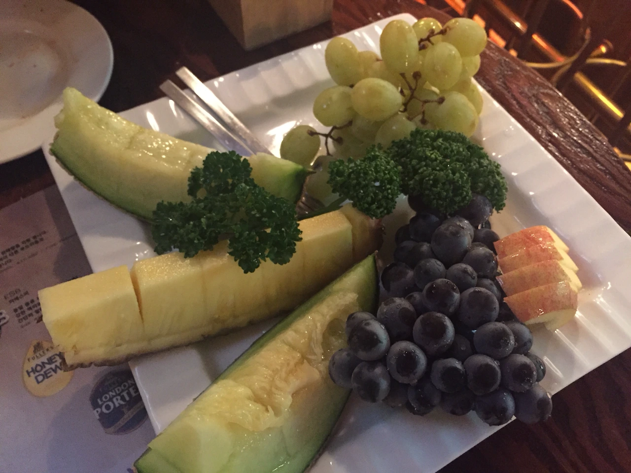매콤달콤한 치즈 피자는 맛있었고, 구색 맞추기 같은 과일은 쏘쏘.