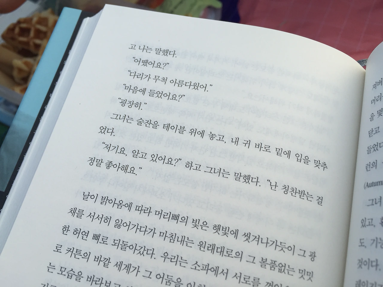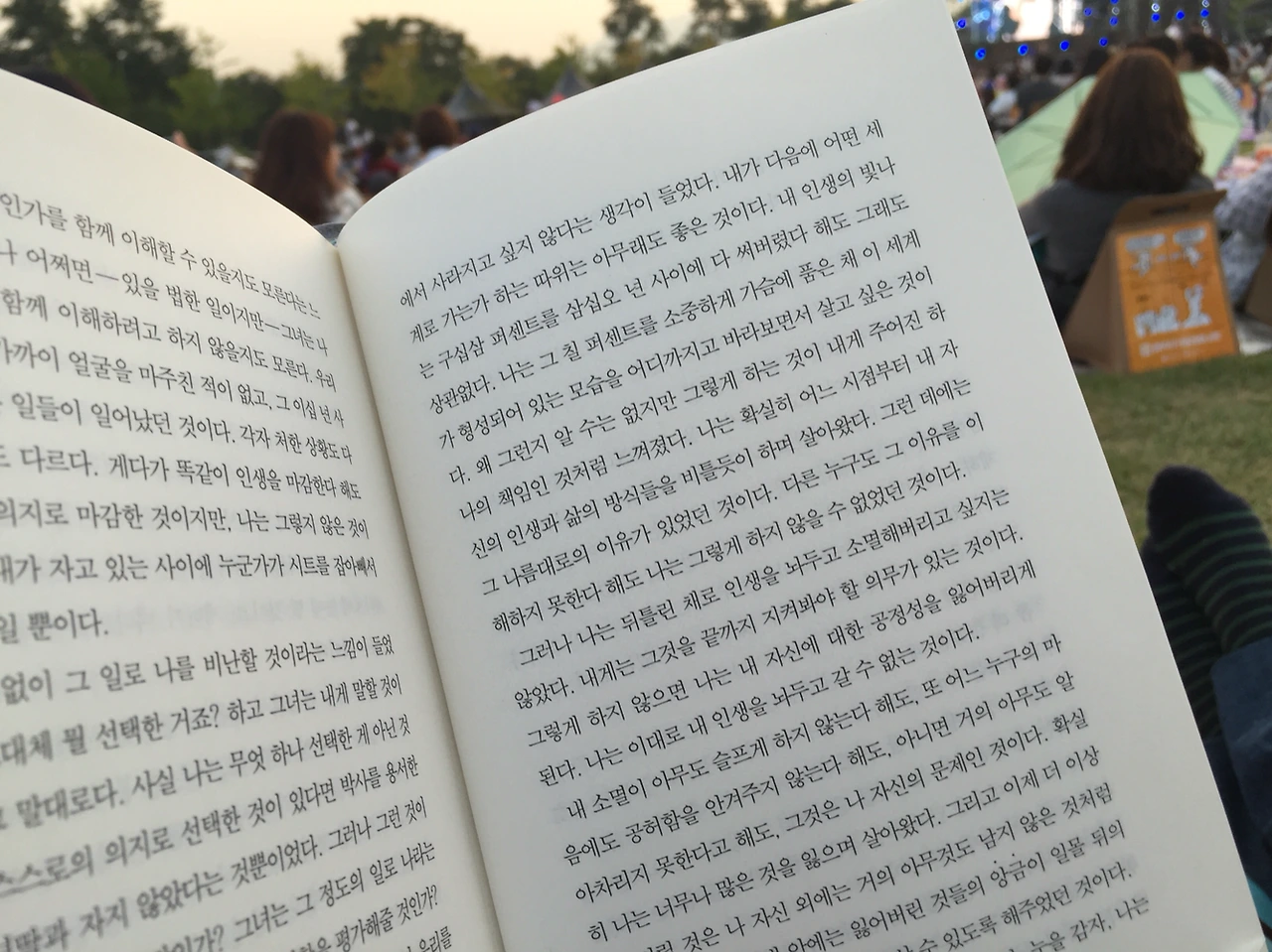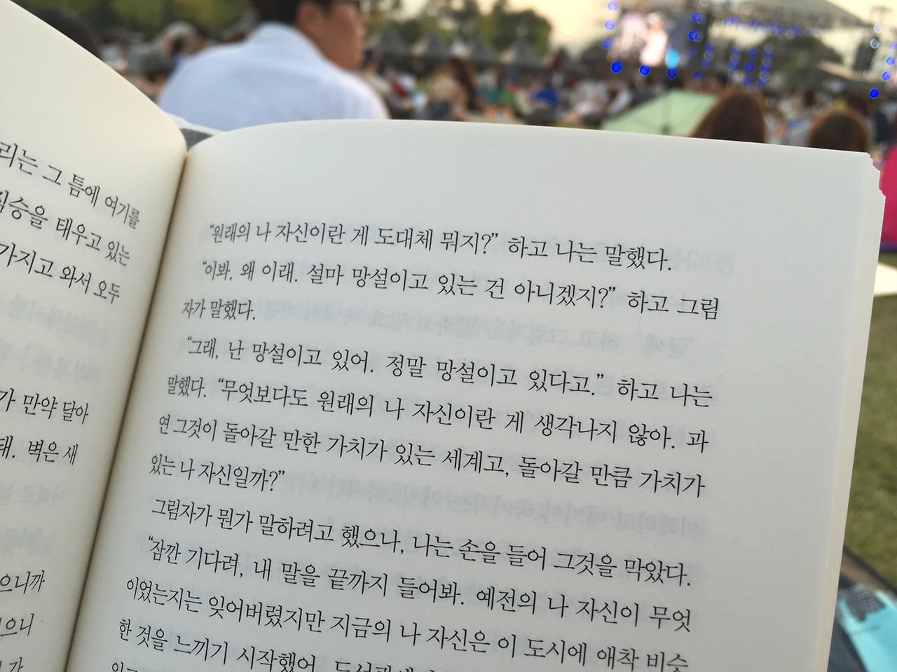 윤종신의 라이브가 흘러나오는 가운데 잔디밭에 엎드려 딩굴거리면서 칵테일을 빨대로 홀짝이며 책을 읽었던 비현실적인 순간은 그대로 영원히 기억하면 좋겠다.
