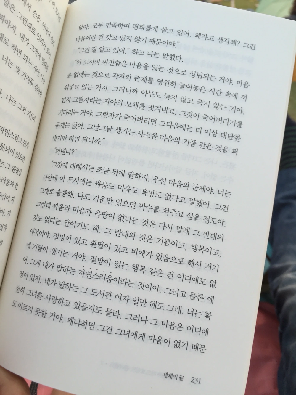 책 정말 잘 썼다. 평행한 세계와 나의 세계가 끝나고 시작되는 찰나, 그리고 동시에 진행되는 소설의 클라이막스.