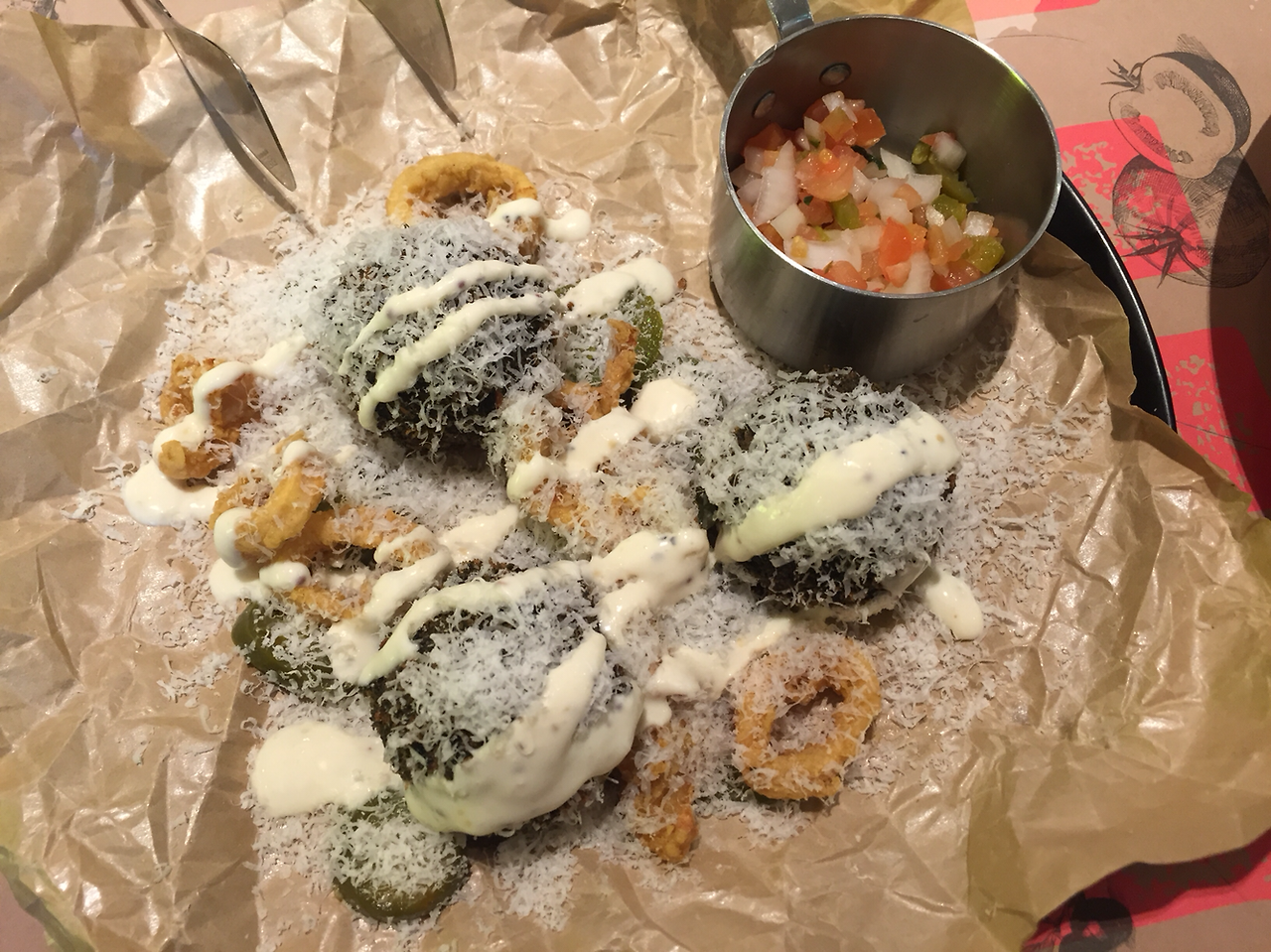 공 같은 표면에 불을 붙여서 바삭하게 구워주는 폭탄 피자가 인기인, 더플레이스. 현대백화점 판교점 5층 CGV 옆에 있다. 폭탄피자는 재미로 한번쯤 먹어볼만 한 듯~