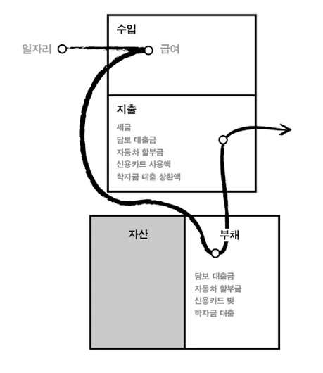 ‘현재 가지고 있는 재산액(자산)과 앞으로 가져야 할 재산액(부채)’ 부채를 단지 갚아야 할 것으로 보지 않고 앞으로 가질 재산으로 봤다는 것이다.
