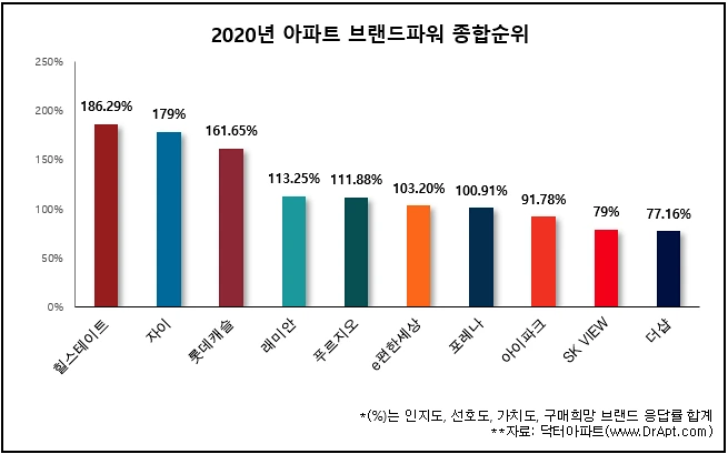 많은 사람들이 관심을 가지고 있는 부동산의 경우는 어떨까? 사람들은 어떤 아파트를 가장 선호할까? 부동산 리서치회사 닥터아파트(www.DrApt.com)에서‘2020 아파트 브랜드파워의 설문조사’를 시행했다고 한다.