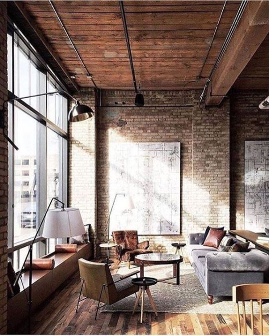 이전 인더스트리얼 자료사진들을 보시면 가장 큰 포인트가 공통적으로 들어있는 것을 보실 수 있으실 텐데요, 예전 집, 공장들은 지금처럼 시멘트 콘크리트 등을 부어 지은 것들이 아닌, 벽돌로 짓는 연화조 구조의 건물들이 정말 많았습니다, 이 흔적들이 남아 마감재를 제거하면 자연스럽게 엄청나게 낡은 느낌의 벽돌들이 드러나게 되는데요, 이 자체를 이용하여 벽면을 활용함으로써, 전통 있어 보이는 멋진 포인트가 되는 것입니다.