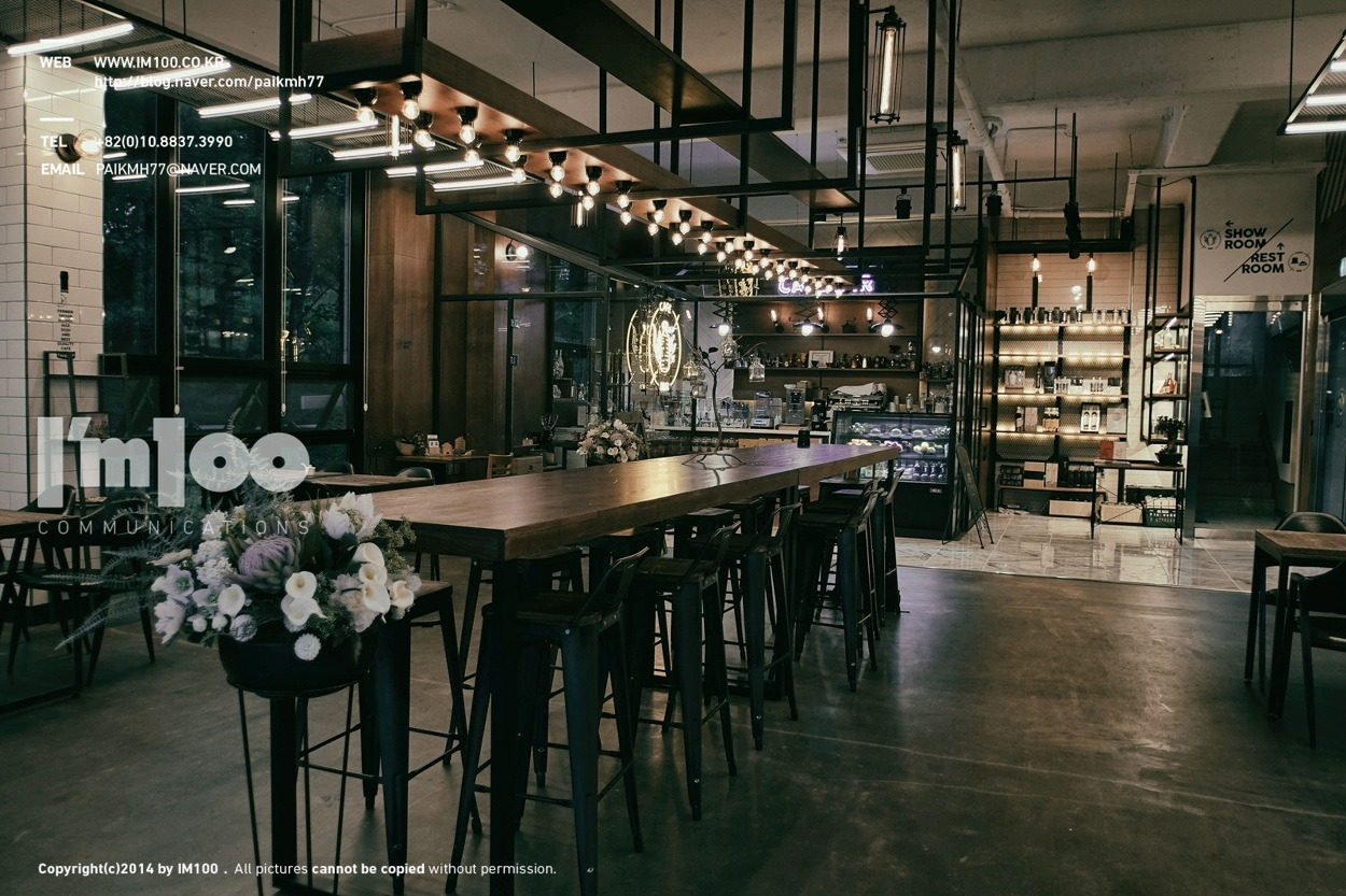 인더스트 리얼한 스타일의 레스토랑입니다, 통합적으로 브랜딩까지 같이 작업된 건인데, 인더스트리얼한 감과 알맞은 로고, 그래픽 디자인으로 차별화된 인테리어 아이덴티티를 만드는데 노력했던 것이 생각나네요,