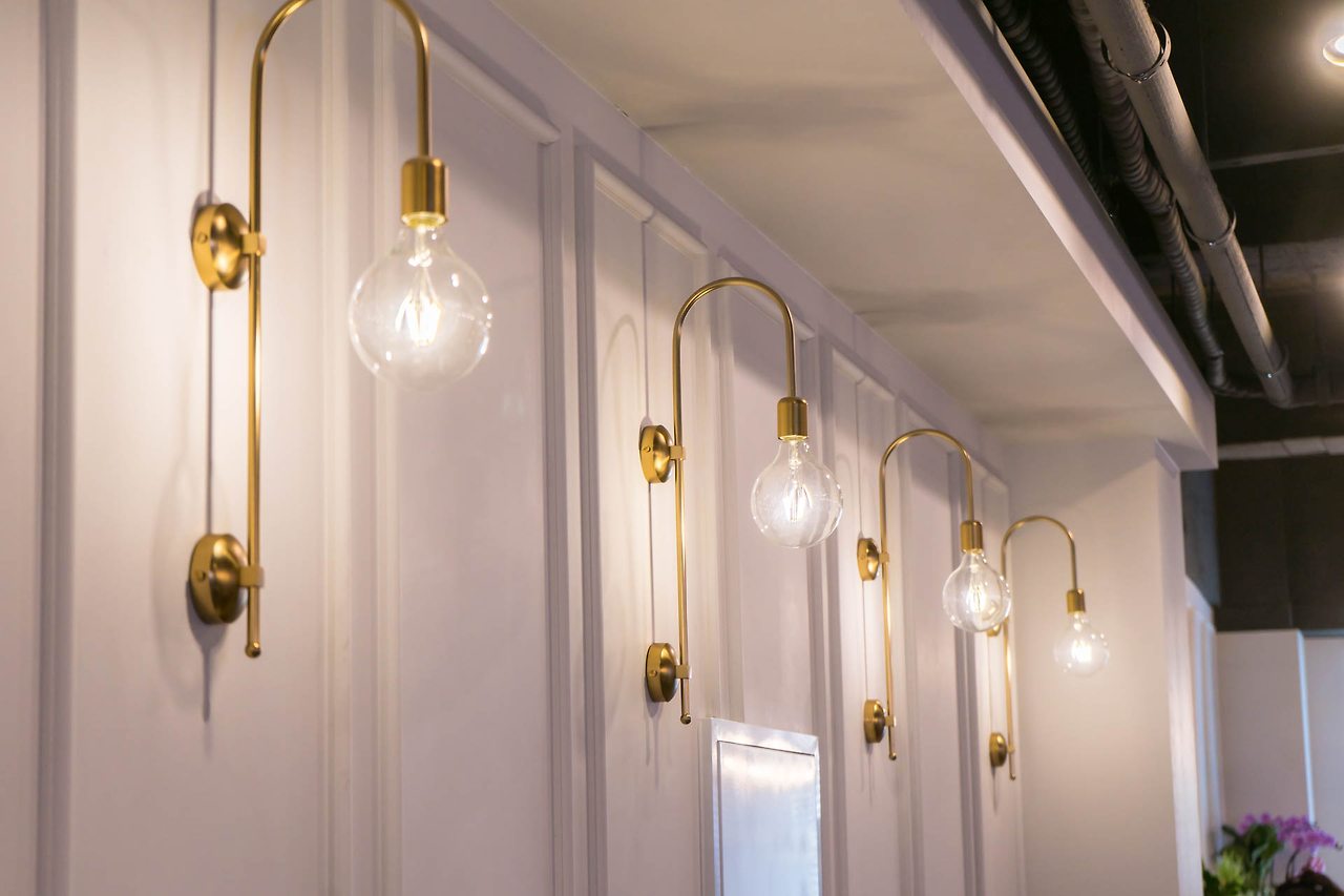 미용실 컨셉답게 돔형태의 캐노피에 골드 컬러 조명들을 내부 레일까지 달아주었습니다.