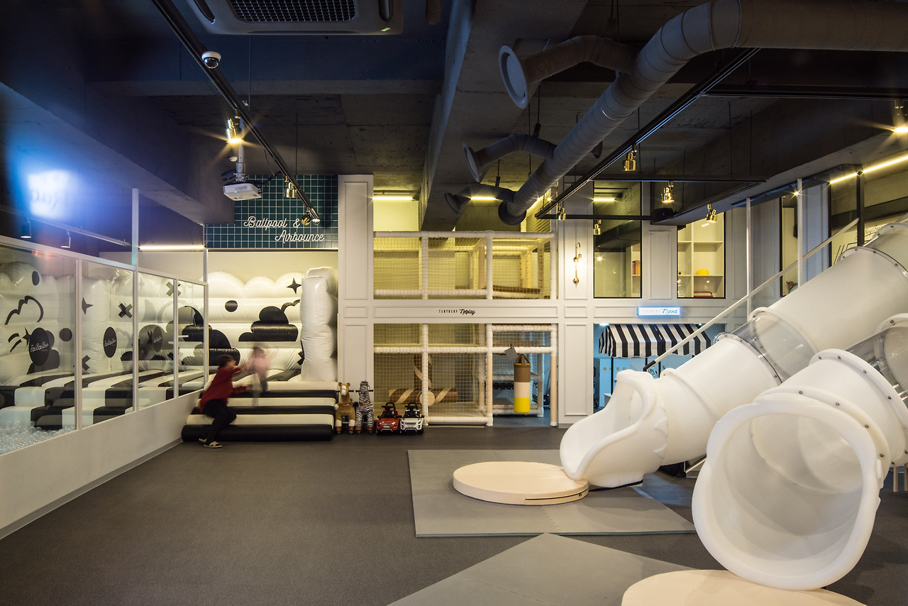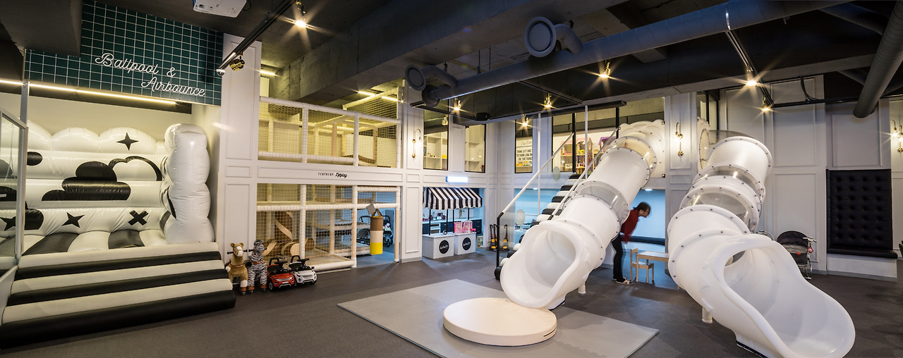 컨셉이 파격적이였던 일산점과는 다르게, 프리미엄을 강조한 키즈 카페 인테리어를 위해 조금 더 클래식하고
