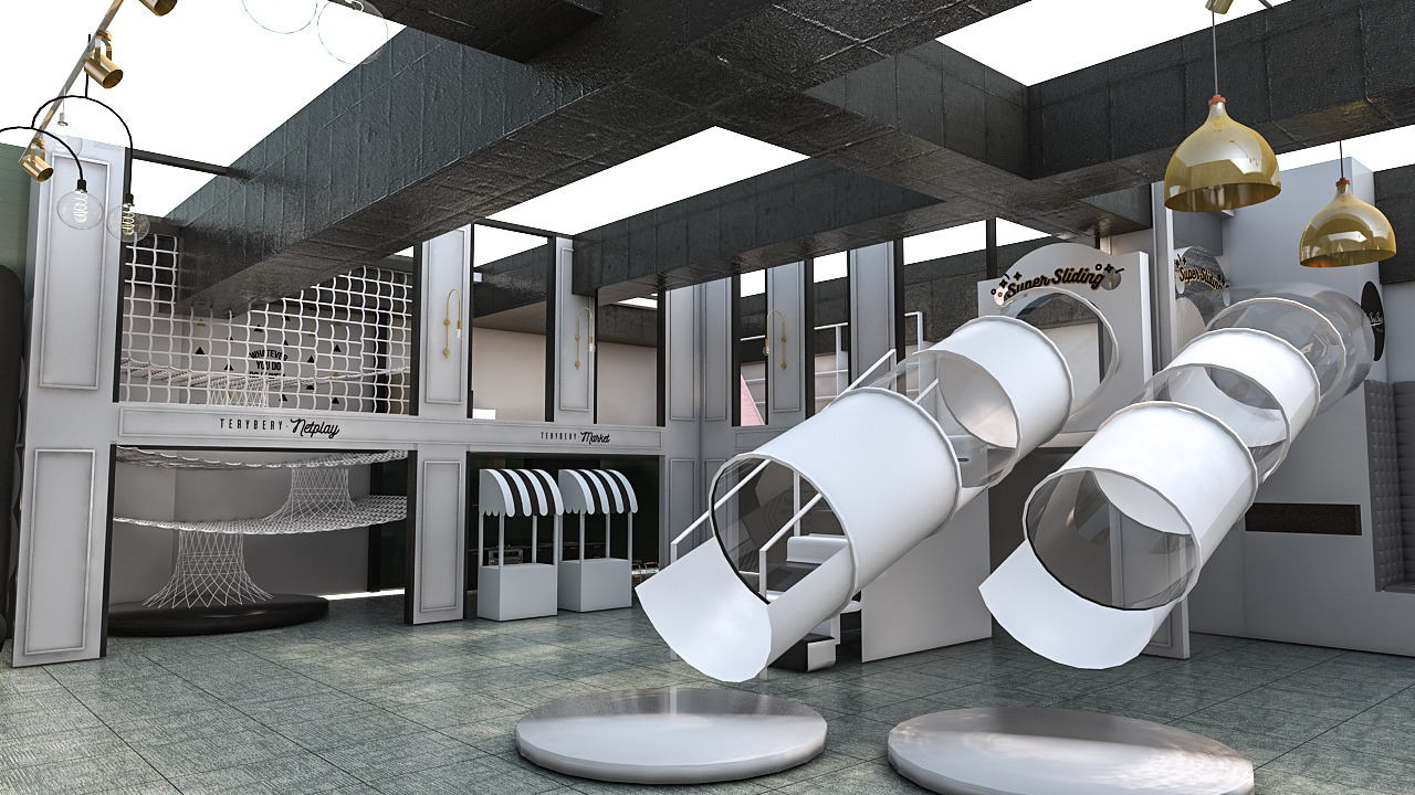 시공전 기획 단계 미팅시 클라이언트들꼐 보여드렸던 키즈 카페 인테리어의 3D 투시도 시안들입니다.