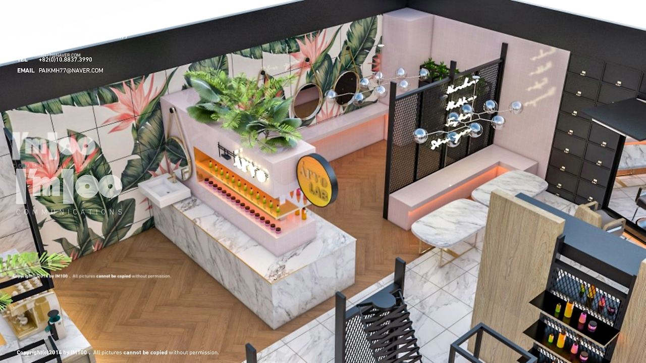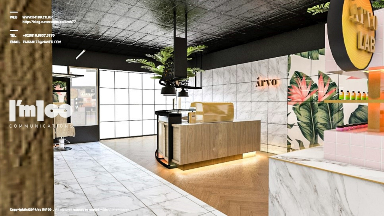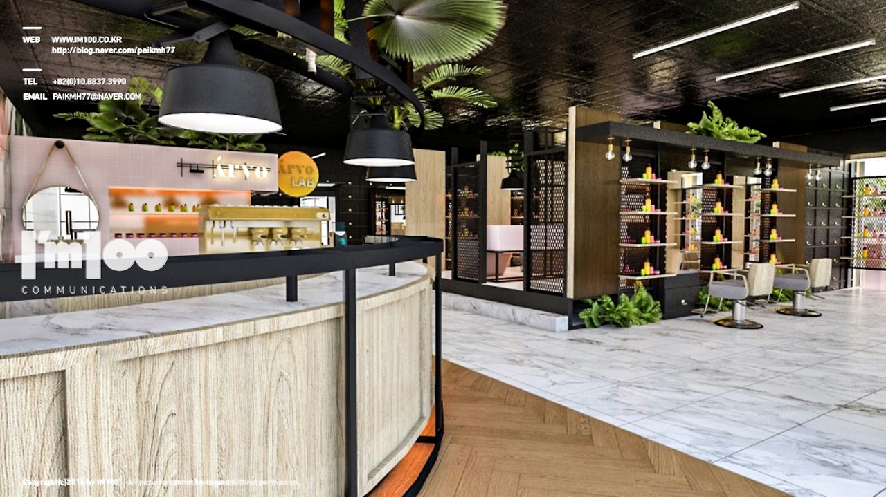 사장님께서는 arvo라는 헤어 트리트먼트에 관련한 인지도 있는 상품 브랜드를 이미 가지고 계셨고, 손님들께서 원래 가지고 계신 브랜드의 느낌을 마음에 들어하시어 그런 스타일로 인테리어 시공도 하고 싶다는 문의가 많이와 , 그것에 맞춘 미용실 인테리어 브랜드를 런칭하고 싶어하셨는데요. 그에 따라 해당 미용실 인테리어 디자인에 대한 3D로 투시도를 먼저 만들어 완성품을 보고 사업을 준비하고 싶어 하셔서 아임백 커뮤니케이션즈를 찾아오게 되셨다합니다:)