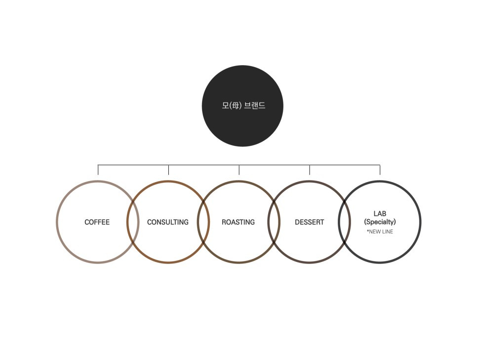 커피(카페), 컨설팅, 로스팅, 디저트 등 하위 브랜드들이 각각 뿌리를 뻗어나간 상태였고