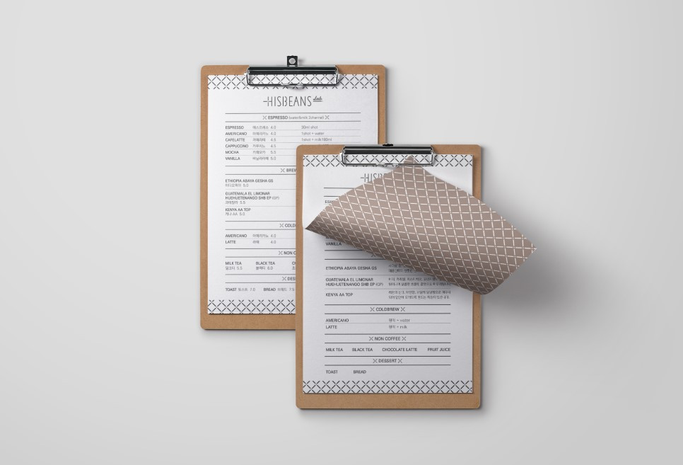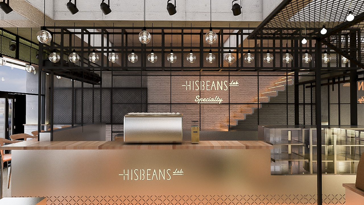 하위 브랜드 중 HISBENAS Lab(랩)을 위한 카페 브랜딩입니다.