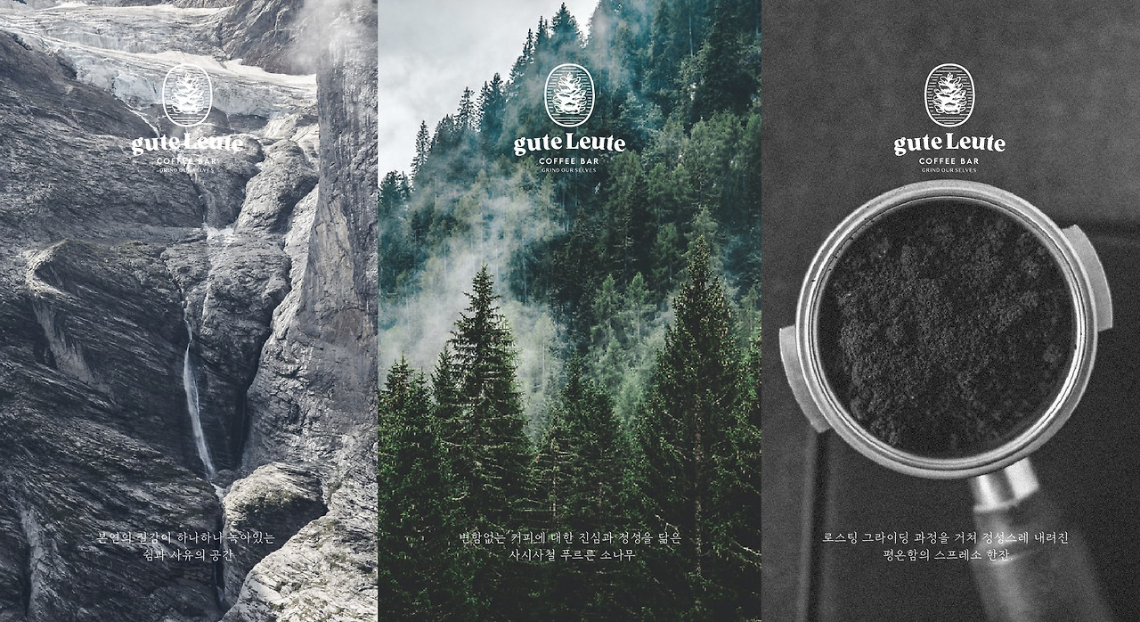 특히 오피스상권이 집중되어있는 강남구청 내에 어떻게 하면 우리만의 색깔로, 우리만의 모습으로 힐링이나 쉼을 느낄 수 있는 카페 인테리어 공간을 표현할 수 있을까 하는 생각들이 모여 지금의 구테로이테 카페 인테리어와 브랜딩 모습이 완성되어갔습니다. 여유로운 공간에서 느껴지는 쉼과 사유, 그리고 브랜딩에서 느껴지는 우직하고 늘 푸르른 소나무의 모습과 같은 커피를 향한 마음, 로스팅 그라인딩 과정이 연상케 되는 텍스쳐감에서 떠오르는 에스프레소 한 잔.