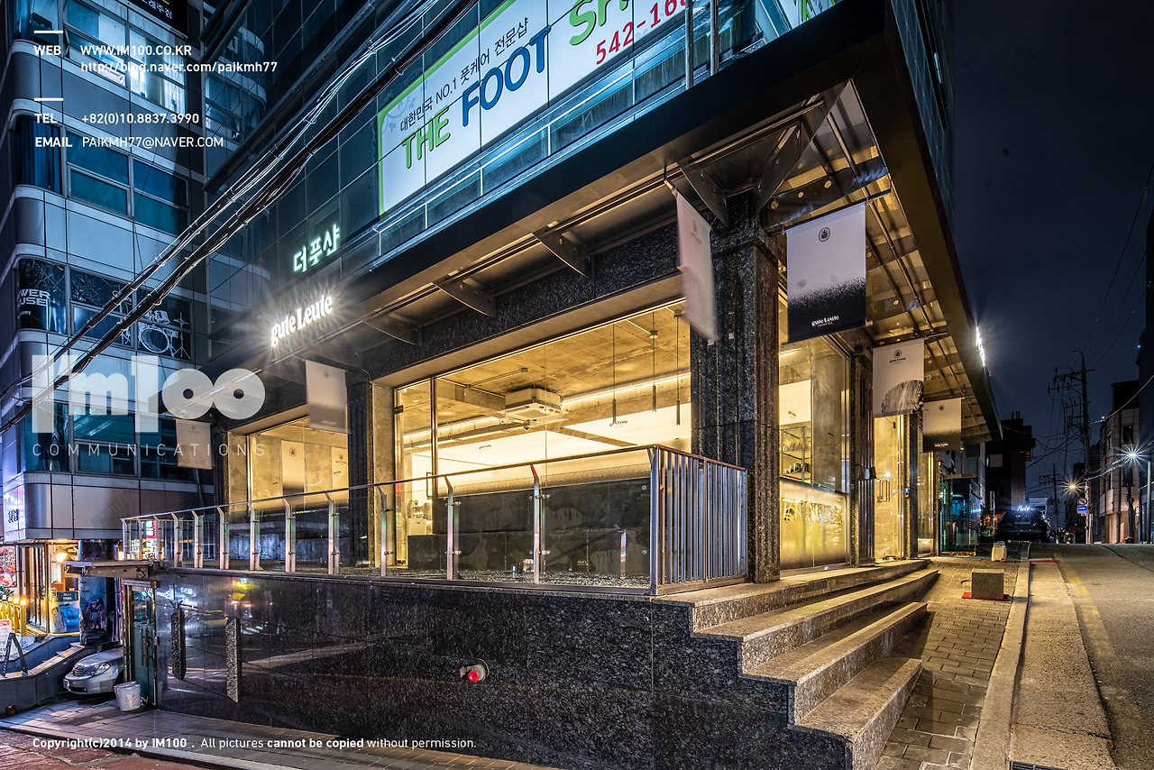 외부에서 너무 존재감이 없던 기존의 파사드를 밤에도 벽면까지 내려온 바리솔 조명을 켜서 존재감있는 공간으로 만들었습니다.여러 조명을 쓰지않고 한톤으로 간 웜톤의 조명들이 전체 통창으로 만든 파사드의 창호들 사이로 내부의 공간감을 전합니다.