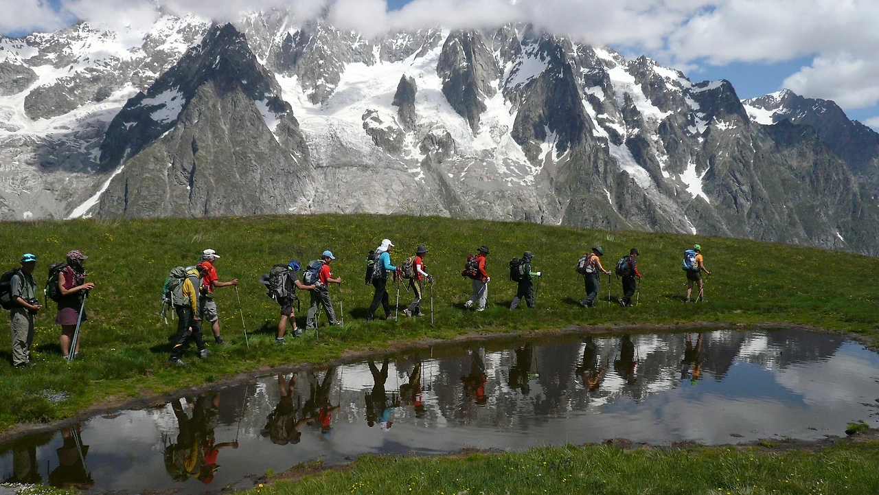 아주 완만한 능선을 따라 조금씩 고도를 높이면 ‘거인의 이빨’이라 불리는 당 뒤 제앙(Dent du Ge'ant, 4013m), 그랑 조라스(Grandes Jorasses, 4208m)가 손에 잡힐 듯 눈 앞에 펼쳐진다. 이어지는 뾰쪽한 암봉들의 파노라마와 거대한 빙하 그리고 감히 범접하기 힘든 검은 화강암벽들의 자태는 환호와 깊은 탄성을 자아내게 한다. 가끔은 빙하물이 만든 조그만 알파인 연못에 그 모두가 잠긴 이채로운 모습을 본다면 그 자체로 취경이 아닐 수 없다. 말로만 듣던 위대한 산들이 한곳에 모여 트레커들에게 무한 감동을 주는 몽 드 라 삭스 트레일이야말로 TMB의 하이라이트라 해도 과언이 아니다.