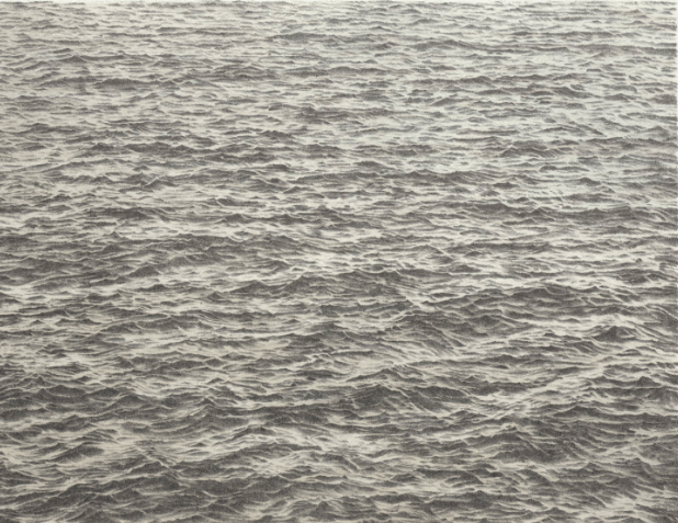 셀민스는 이후 10여 년간 달 표면이나 행성 등 여러 과학적 이미지에 관심을 갖으며 페인팅을 잠시 쉬고 흑연과 목탄에 몰두하게 된다. 이 시기 동안 그는 결혼을 하고 이혼을 하는 과정을 겪으며 작업실에서 가까운 바다로 강아지와 함께 매일 밤 산책을 나가 밤바다를 보았다. 그리고 사진을 찍었다. 이 시절에 그려진 바다 물결 작업과 밤하늘 시리즈는 그의 대표작이 되었다. 비야 셀민스는 어떤 마음으로 수없이 많은 바다의 물결과 밤하늘을 반복해 그려나간 것일까. 아니, 그릴 수밖에 없었던 것일까. 반복되는 수행적 작업은 지워지기 위한 기억으로 남겨진 걸까. 어딜 봐도 끝없이 펼쳐진 바다 표면의 물결을 자세히 들여다보면, 수평선이 없는 모호하고 무한한 느낌의 공간이 펼쳐지지만 그들은 각기 다른 명도와 질감을 가지고 있다. 셀민스는 이것을 재묘사(re-describing)라 부르며, 일종의 물리적 대상이 될 때까지 반복적으로 그려나가는 일을 지속했다.