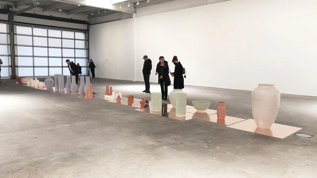 2020년 그의 파트너인 조나스 우드와 같은 갤러리, 즈워너에 소속되었다는 소식을 접했다. 이후 처음 열리는 쿠사카의 개인전이며, 즈워너에서 도자 작업만을 단독으로 선보이는 것 또한 처음이 아닐까 싶다. 갤러리에 들어서자마자 일렬로 놓여있는 도자기들은 얇은 쿠퍼(copper) 판 위에 마치 분홍빛이 덮인 거울 위에 놓인 것처럼 반사되어 아름답게 전시되고 있었다. 도자기에 문외한이지만, 쿠사카의 작품에서 도드라지는 점이 있다면, '촉각'이 즉각적으로 다가왔고, 현대적인 도자기의 형태와 구석기시대 볼법한 모양을 가진 도기가 함께 전시되어 흥미롭기도 했다. 종종 우드의 페인팅에서 쿠사카의 작품으로 추측되는 도자기가 그려져 있어 그의 작업이 실제로 몹시나 궁금했었는데, 첫 개인전답게 fresh 했으며, 그에 대한 갈증이 더 생기기도 했으니 성공한 첫전시일까.