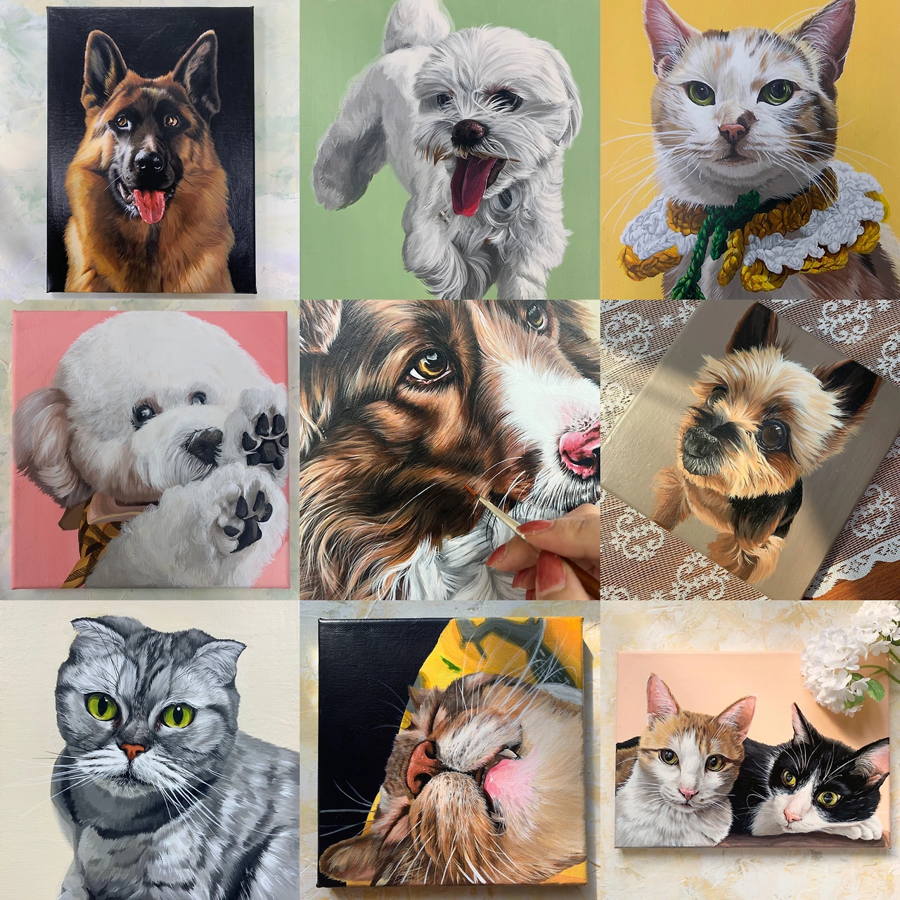 주문받은 그림을 그릴 때마다 겪어보지 못한 희열을 느꼈다. 숨까지 참아가며 1호짜리 세필붓으로 털을 한 올 한 올 그린다. 끝없이 쌓이는 선들이 만나 깊이가 생기고 생명력이 살아난다. 사진과 똑같이, 혹은 사진보다 더 사실적으로 그려낼수록 안도감이 들었다. 의뢰인의 눈물 젖은 감사 메시지를 받을 때면 묵직한 보람에 마음이 울컥했다. 내 캔버스의 무게는 분명 가벼워지고 있었다.