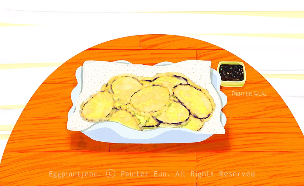 요즘은 튀긴 가지 요리가 흔하고 인기지만, 그때까지 내가 맛본 가지 요리는 데쳐서 양념한 나물 정도였다. 그런데 가지전은 완전히 달랐다. 기름의 고소함, 야채 특유의 달큼함, 튀김의 바삭함은 애호박전과 비슷하면서도 가장자리 쪽의 서걱함은 덜하고, 안은 더 촉촉하고 부드러운 느낌을 지녔달까.