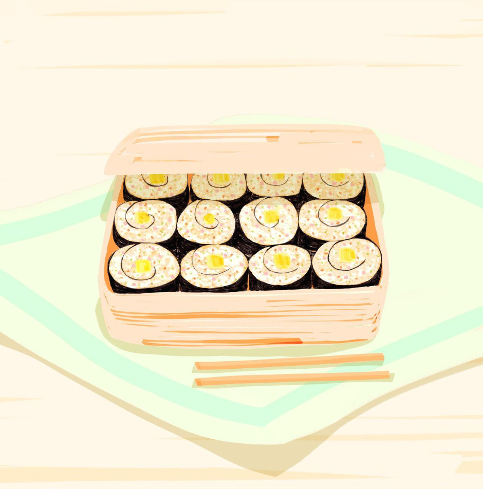 오므라이스가 더 어울릴법한 김밥은 많은 시간과 정성이 들어가지만, 소박한 겉모습을 띄고 있다.
