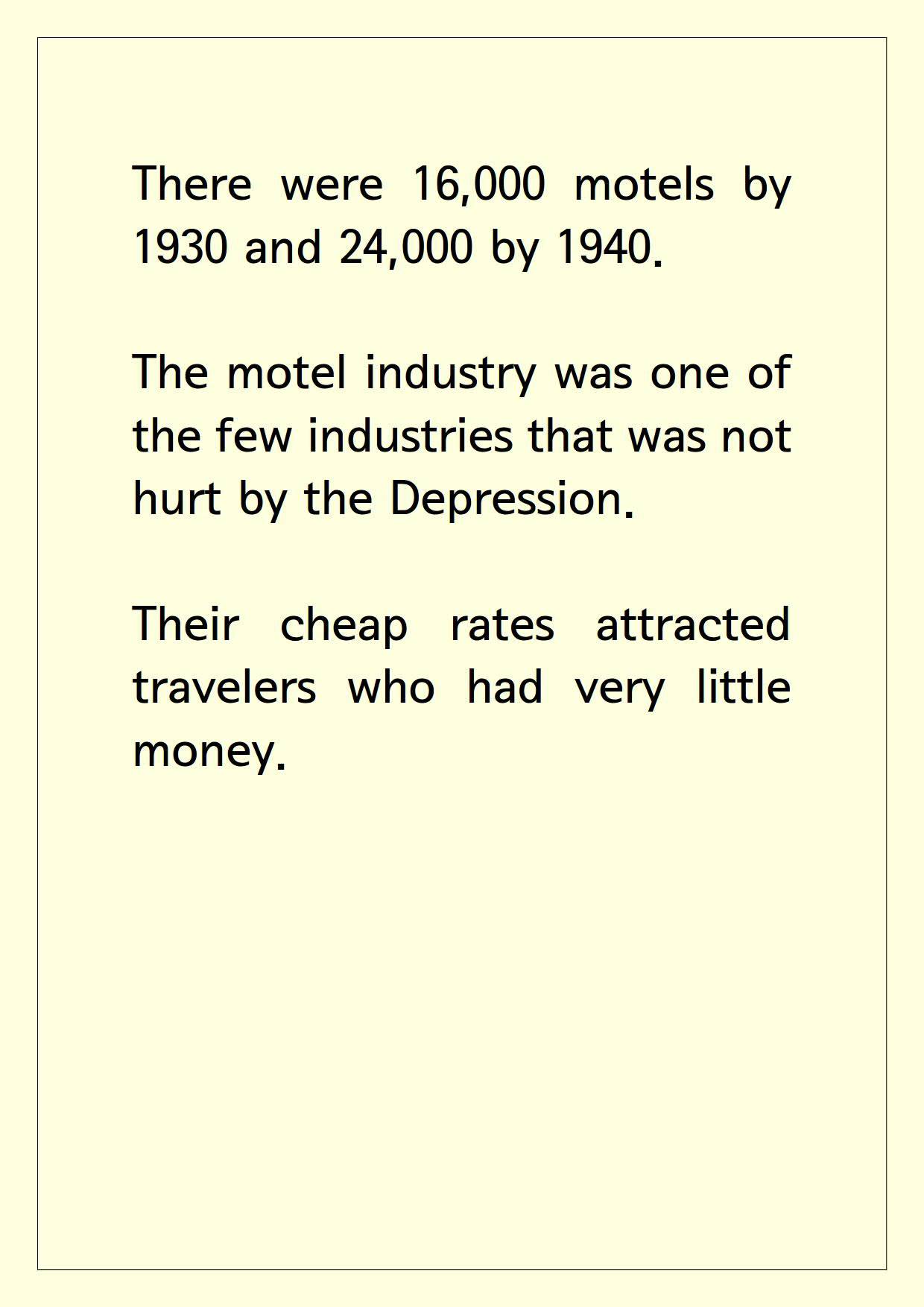 1920년부터 1941년까지 미국 모텔산업 성장에 관해 설명하고 있습니다