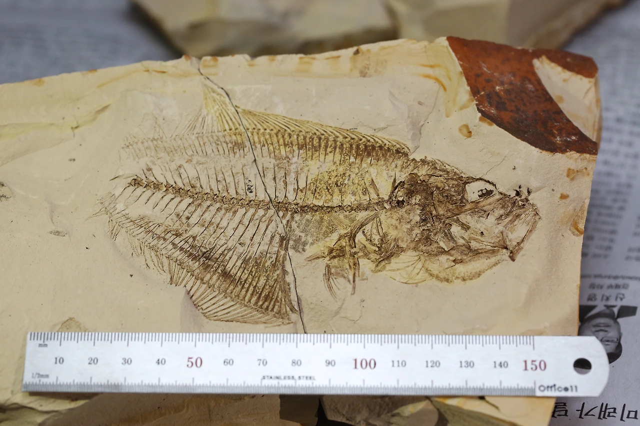 그러나 뭐니뭐니해도 여기서는 물고기 화석이 최고예요. 그런데 여기서 발견되는 물고기 화석은 포항 시내(우현동, 용흥동 등)에서 발견되는 것들과는 큰 차이가 있습니다. 바로 대형 물고기 화석이 나온다는 점이죠!