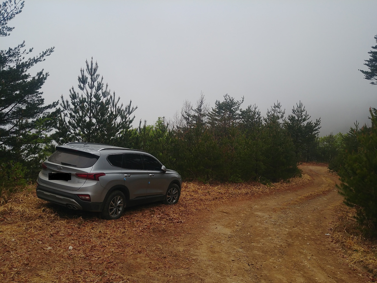 목적지로 가기 위해서는 좁은 임도로 꽤 진행해야 합니다. 그런데 중간중간 임도가 여러 갈래로 갈라집니다. 여기서 문제가 하나 있네요. 산이 험하다 보니 휴대전화 전파가 잡히지 않는다는 점입니다. 길이 매우 꼬불꼬불하기 때문에 위성지도가 먹통이 된 상태에서 생각 없이 가다가는 엉뚱한 곳으로 갈 수도 있습니다. 만만하게 생각했다간 정말 큰 코 다치죠. 그래서 이럴 땐 정신 바짝 차리고 머릿속에 들어있는 뇌이버 지도를 써야 합니다. 예민한 거리감각과, 방향감각까지 총동원해야합니다. 음악이 나오지 않을 때가 거의 없는 마이카지만 적어도 이 순간만큼은 절대로 긴장의 고삐를 늦춰서는 안 되기에 음악을 끕니다. 이렇게 목적지 부근에 무사히 안착했네요.
