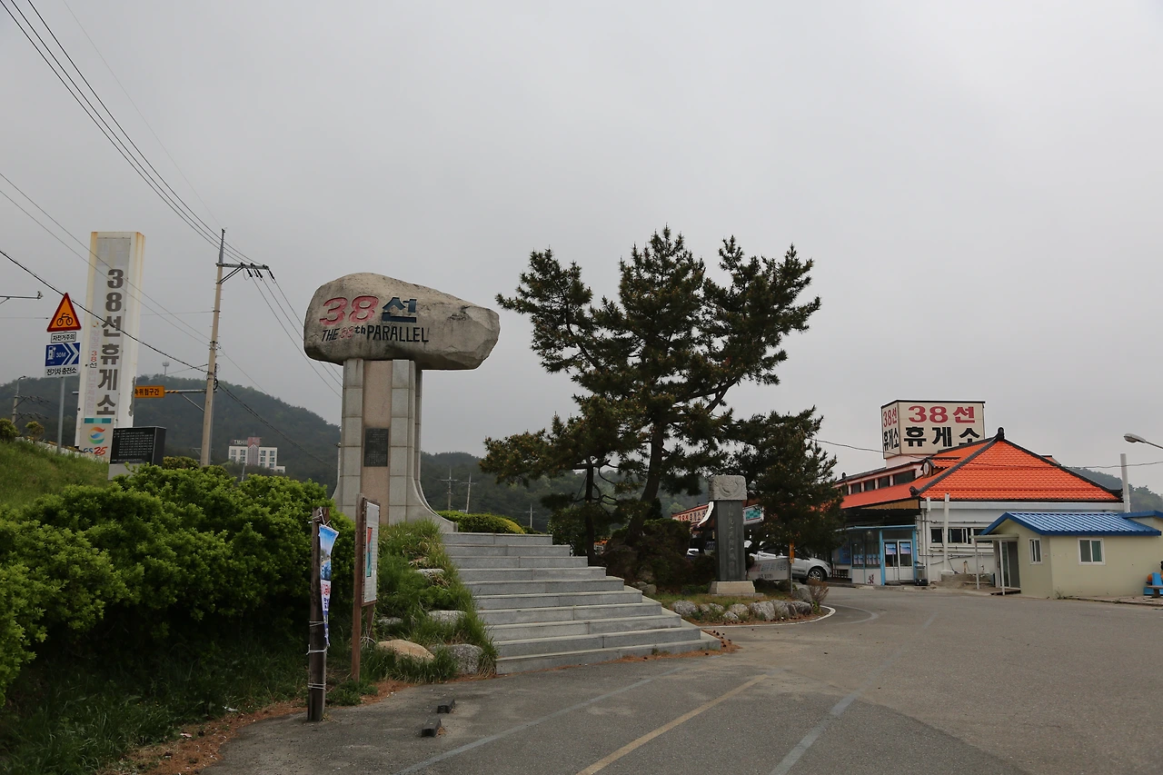 그래서일까요? 뭔가 긴장감이 감돌기도 하고, 지상낙원 수령님 품으로 가는 느낌마저 들었습니다. 38선 표지석 옆에 휴게소가 보입니다. 38선 휴게소라니 왠지 북한 국영 상점에서 팔 것 같은 물건이라도 있는거 아닐까해서 들어가 보았으나 특별한 것은 없었네요. 차라리 38선을 테마로 한 기념품이라도 만들어 팔면 좋았을 텐데 하는 생각이 들었습니다.