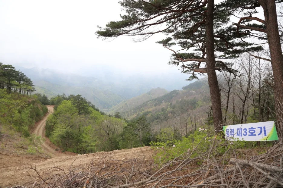 산행기에 등장했던 풍경과는 달리 나무도 많이 베어져 있고, 안개 너머 어딘가에서 들려오는 여러 대의 중장비 소리가 온 산에 가득합니다.