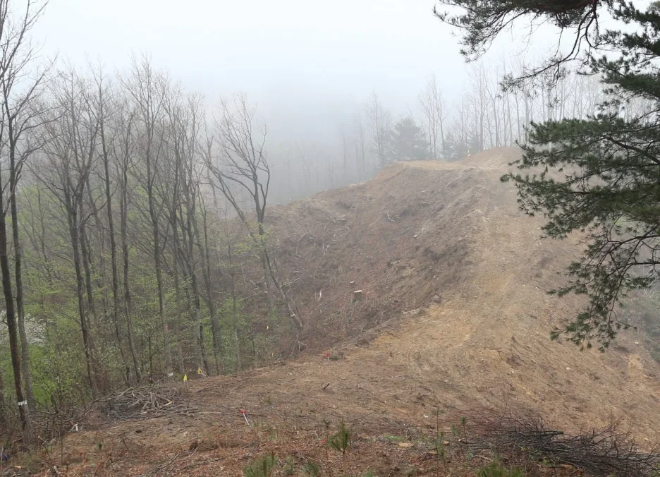 그런데 뭔가 시작부터 예감이 좋지 않습니다. 산이 온통 깎인 채 공사가 벌어졌네요.