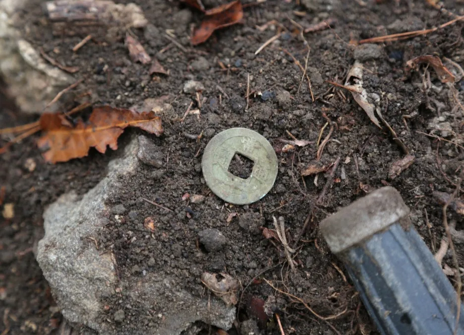 응? 그런데 의외로 쉽게 엽전이 탐지됩니다. 푸르뎅뎅한 상평통보 하나가 톡 튀어나오네요.