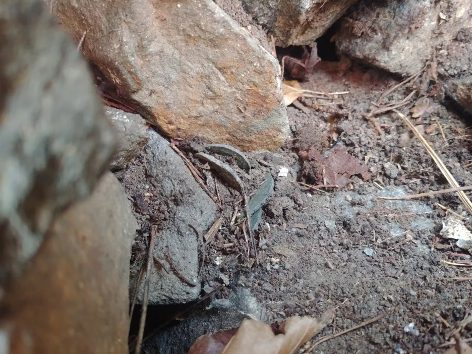 그래도 혹시나 하고 탐지기를 대보니 신호가 잡히네요. 확인해 보니 100% 음료뚜껑, 캔, 껌종이 등 쓰레기였습니다. 등산객들이 길바닥에 대놓고 쓰레기를 버리기 뭐 해 돌무더기 속에 쓰레기를 살포시 숨겨 놓았나 봅니다.