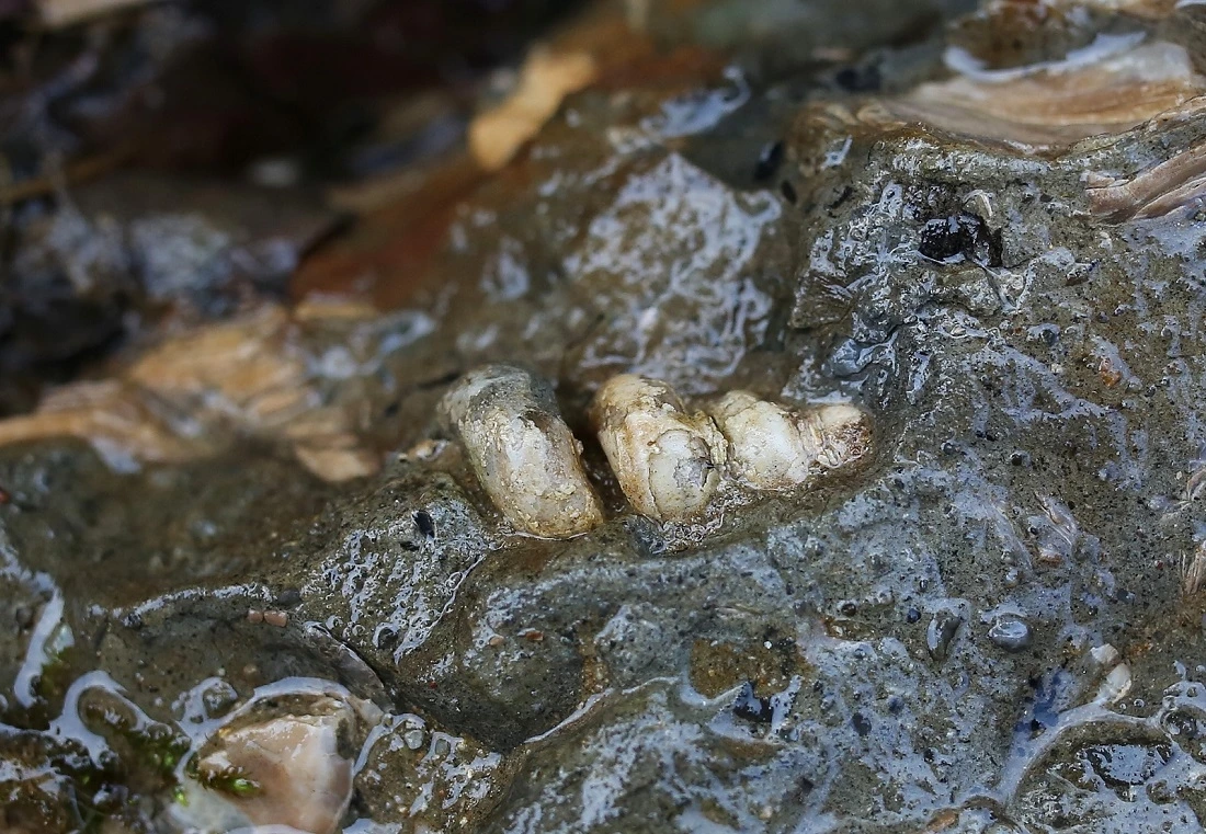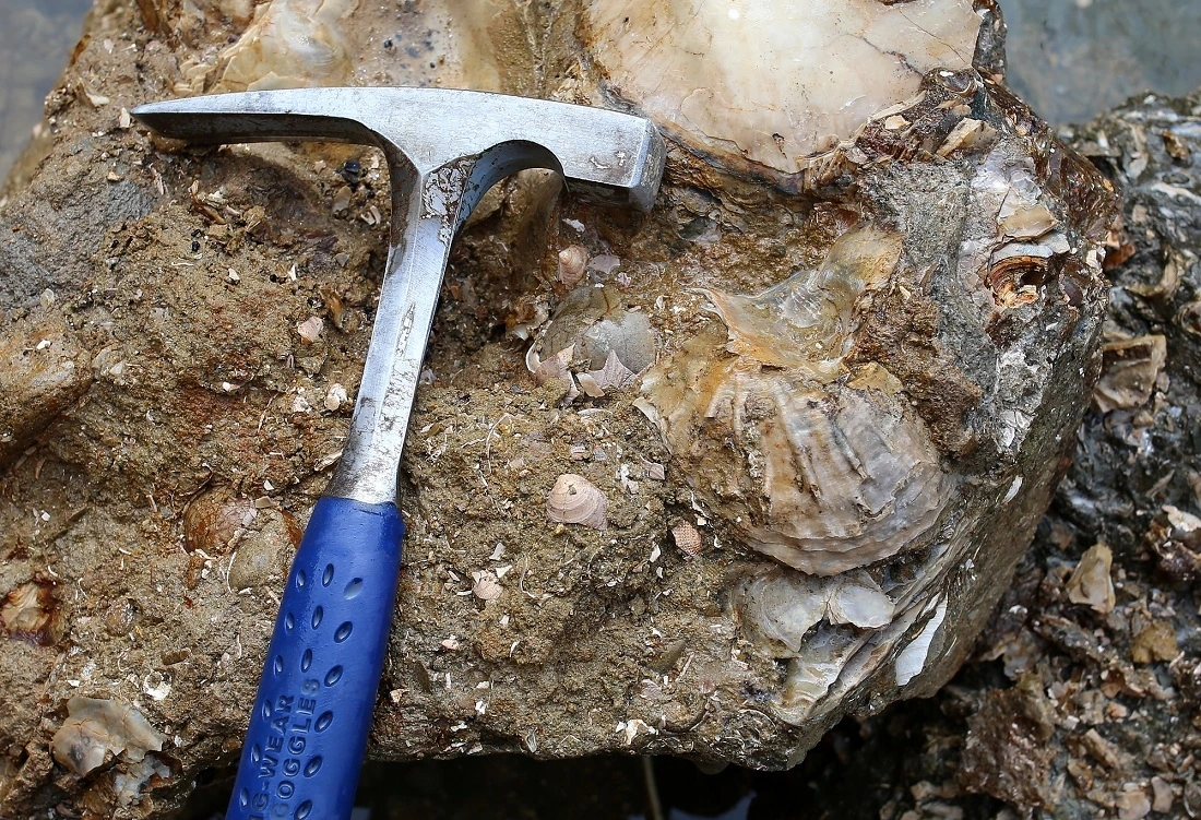 특히 이곳 주위를 살펴보면 지층에서 떨어져 나온 전석에서 굴화석뿐만 아니라 다양한 연체동물의 화석이 관찰됩니다. 지금으로부터 약 1,600만 년 전 신생대 마이오세에 살았던 녀석들의 흔적입니다.