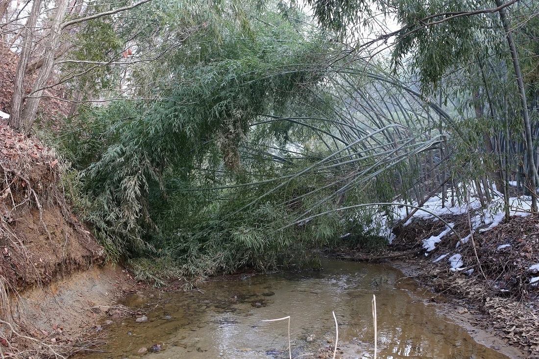 내렸던 눈은 대부분 녹아버렸지만, 계곡 입구에 서있던 대나무가 엄청난 눈의 무게를 못 이기고 그대로 쓰러진 채 그 엄청난 폭설의 위력을 말없이 보여주고 있었습니다.