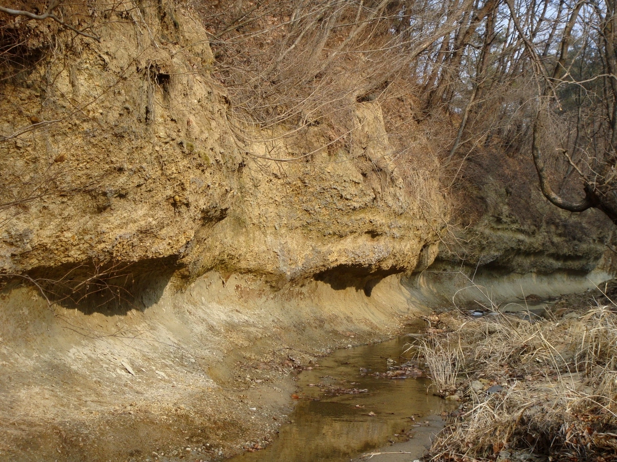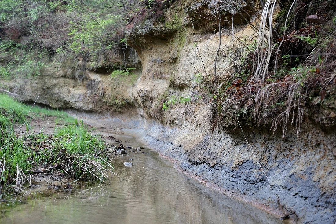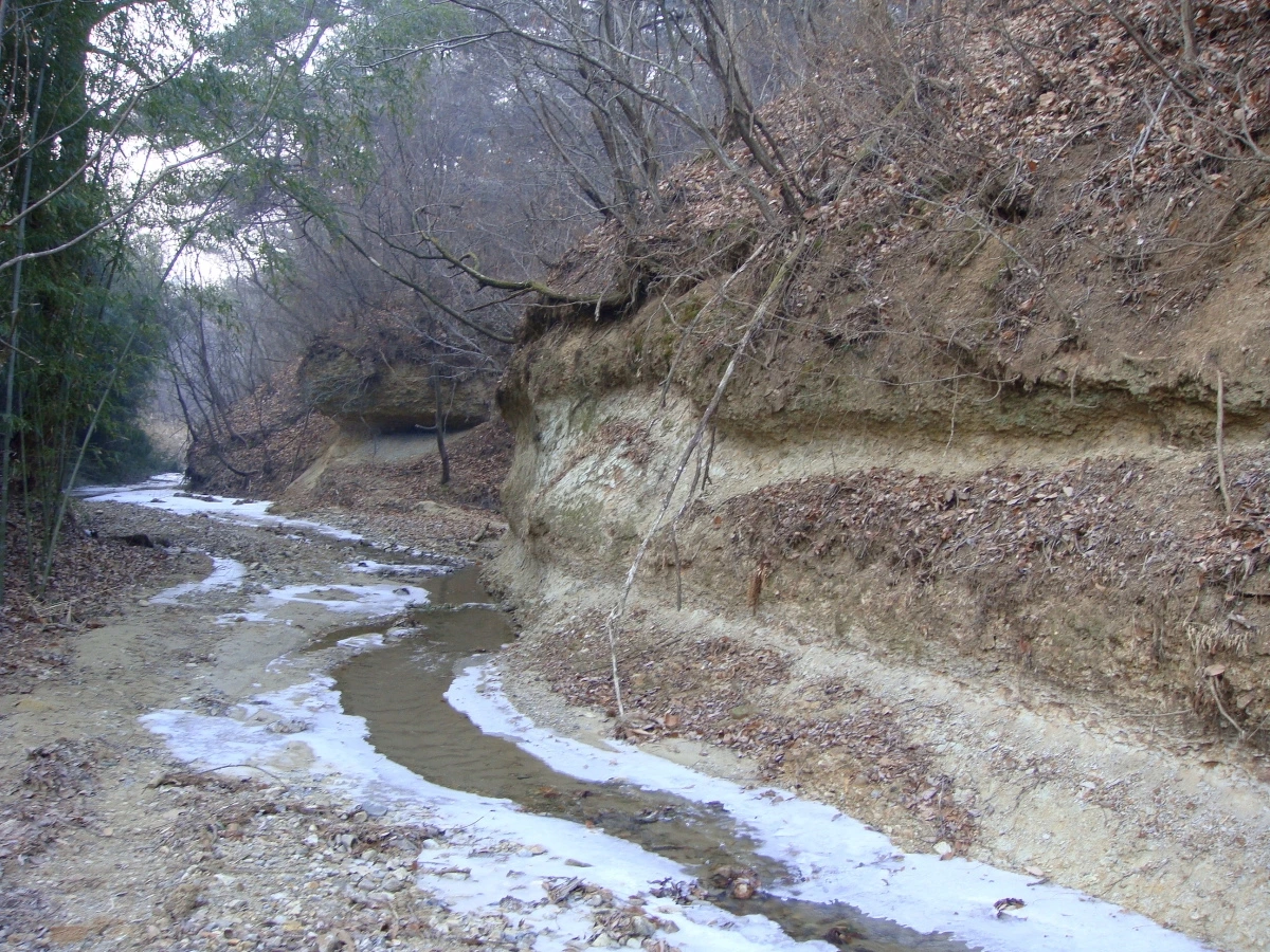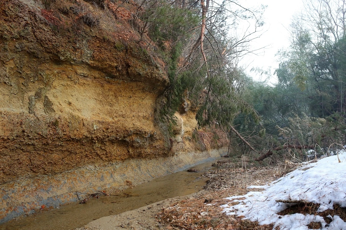 점토층과 사질층이 구분된 지층의 층리가 참 명확합니다.