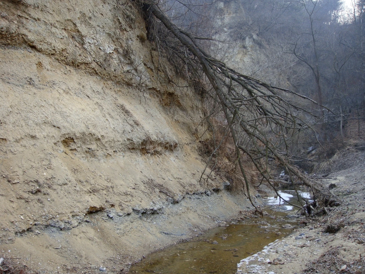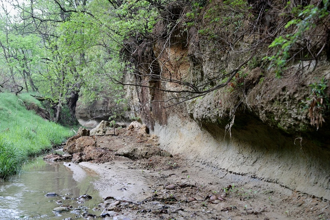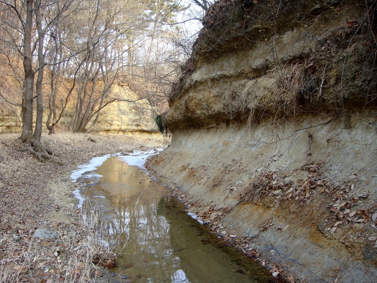 점토층과 사질층이 구분된 지층의 층리가 참 명확합니다.