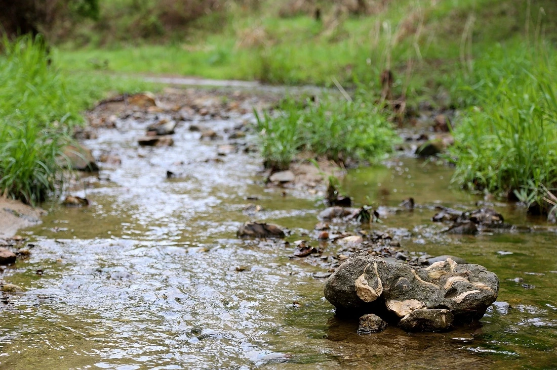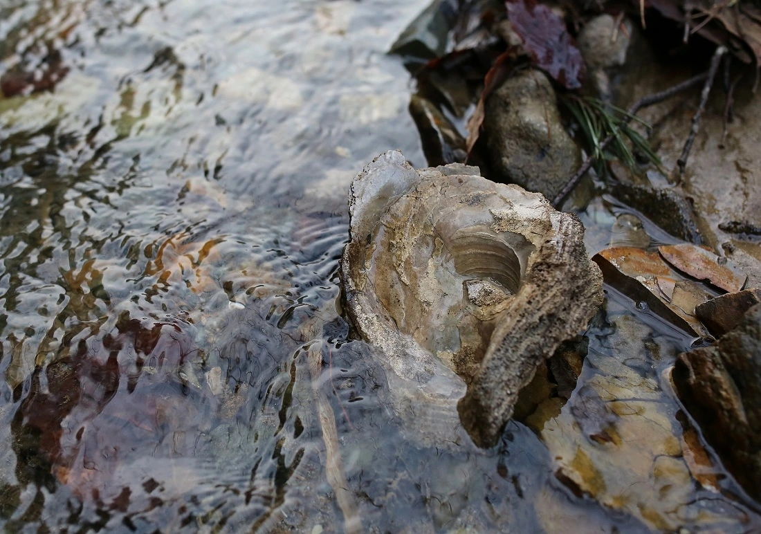 흐르는 계곡물에 아무렇게나 널브러져 있는 굴화석입니다. 화석은 볼 때마다 언제나 반갑습니다.
