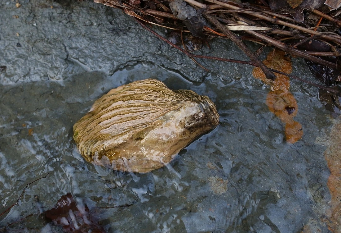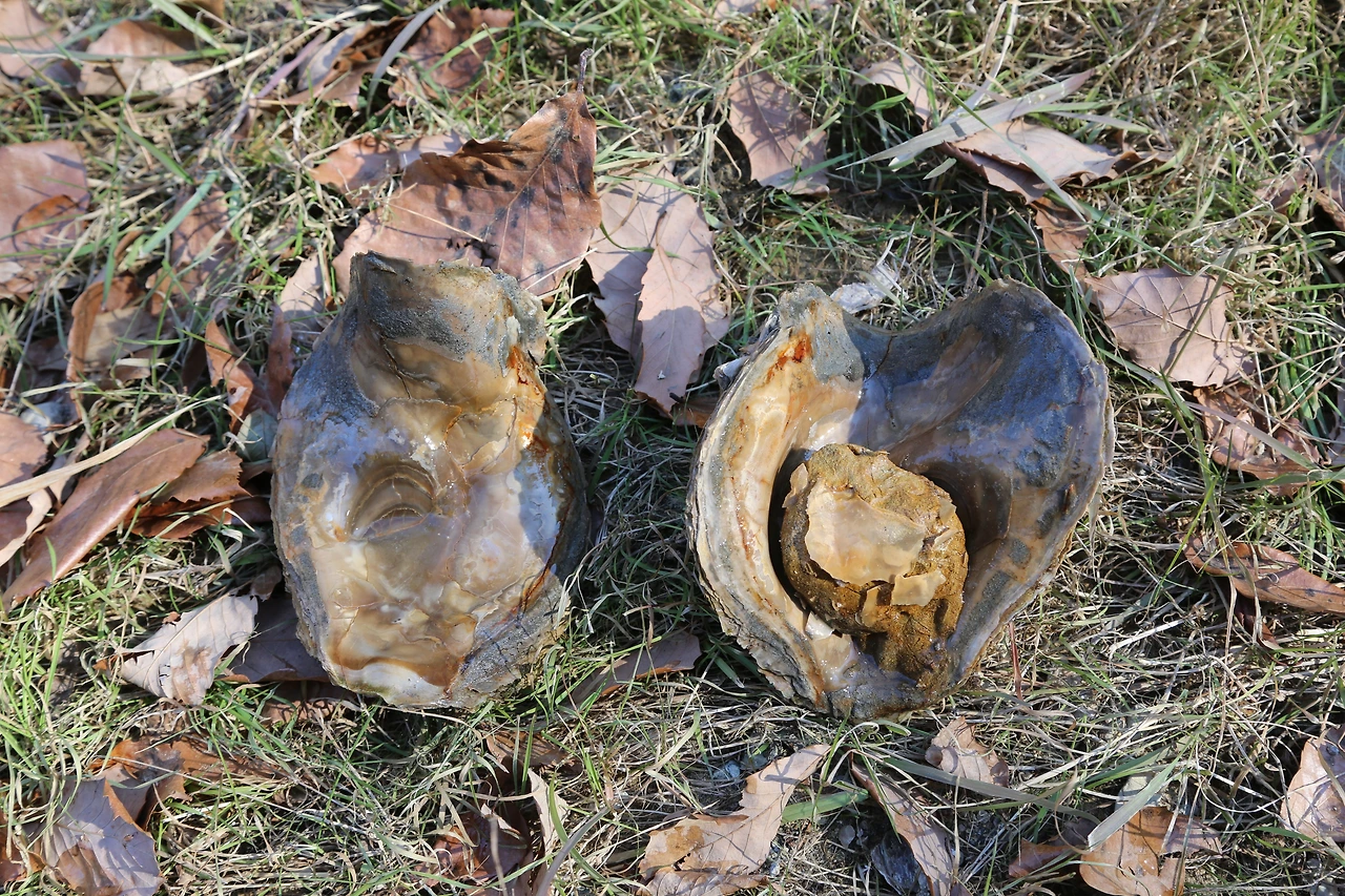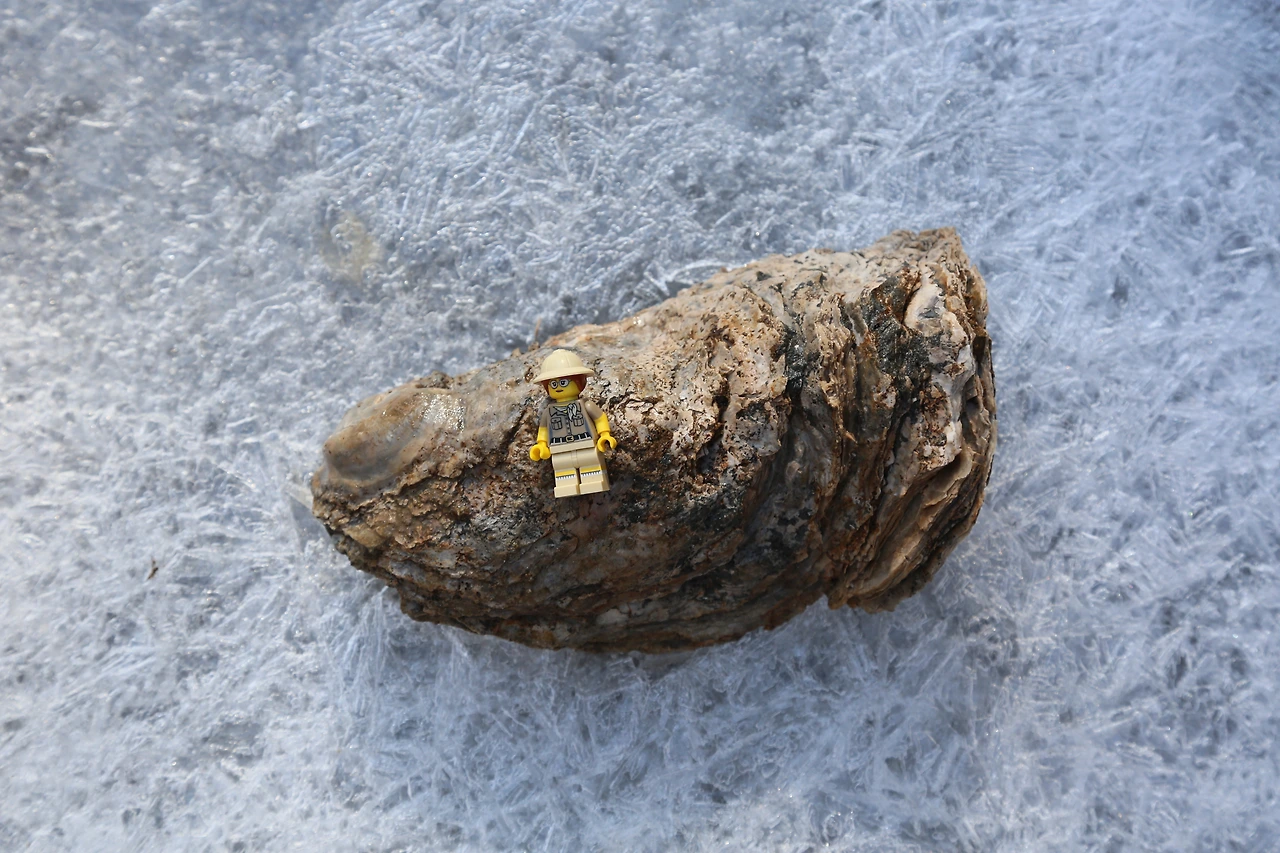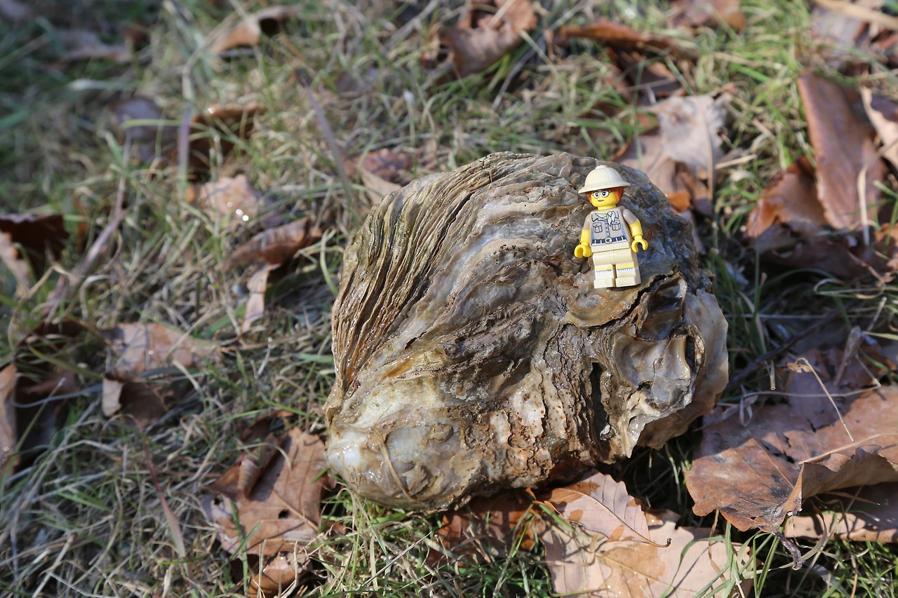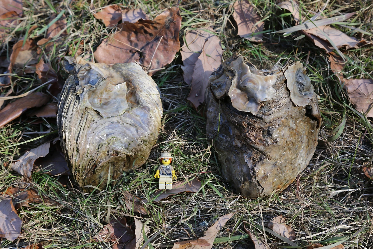 겁나게 큰 굴화석(넙쭉이)입니다. 신생대 굴화석의 특징 중 하나가 매우 두껍다는 것이죠. 두껍다는 것은 살의 수율이 낮다는 뜻이기도 합니다. 껍데기는 커도 알맹이는 작으니 실속은 없었을 듯합니다. 그래도 그 맛이 해산물 마니아인 저로서는 적잖이 궁금하기도 합니다.