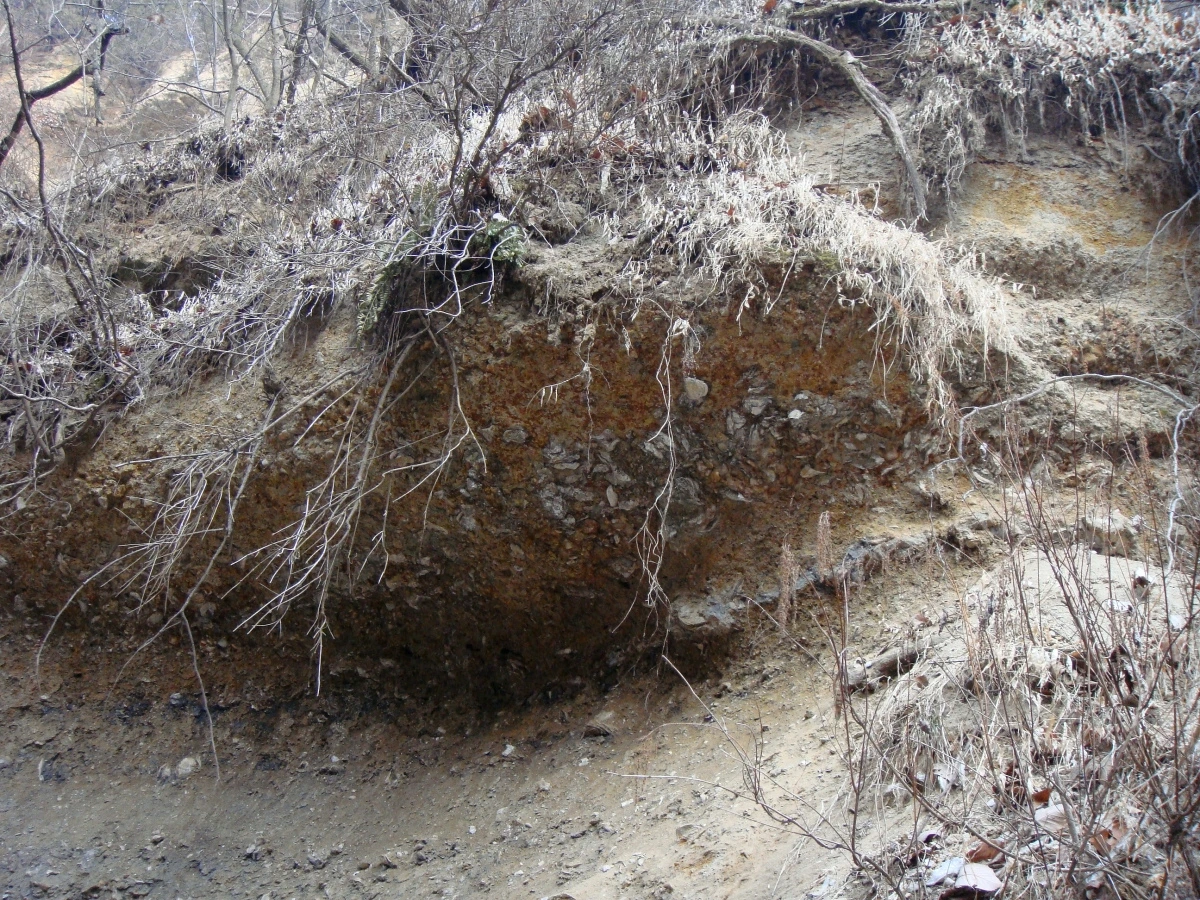 흙속에 박힌 돌 같은 것들이 모두 굴화석입니다. 물론 모두 완전한 형태는 아니지만 잘 찾아보면 괜찮은 것도 있습니다. 그런데 지층이 금세 무너질 듯 위태로워 보여 망치질하기는 상당히 부담스럽습니다. 당연히 저는 사진만 찍고 패스했습니다.