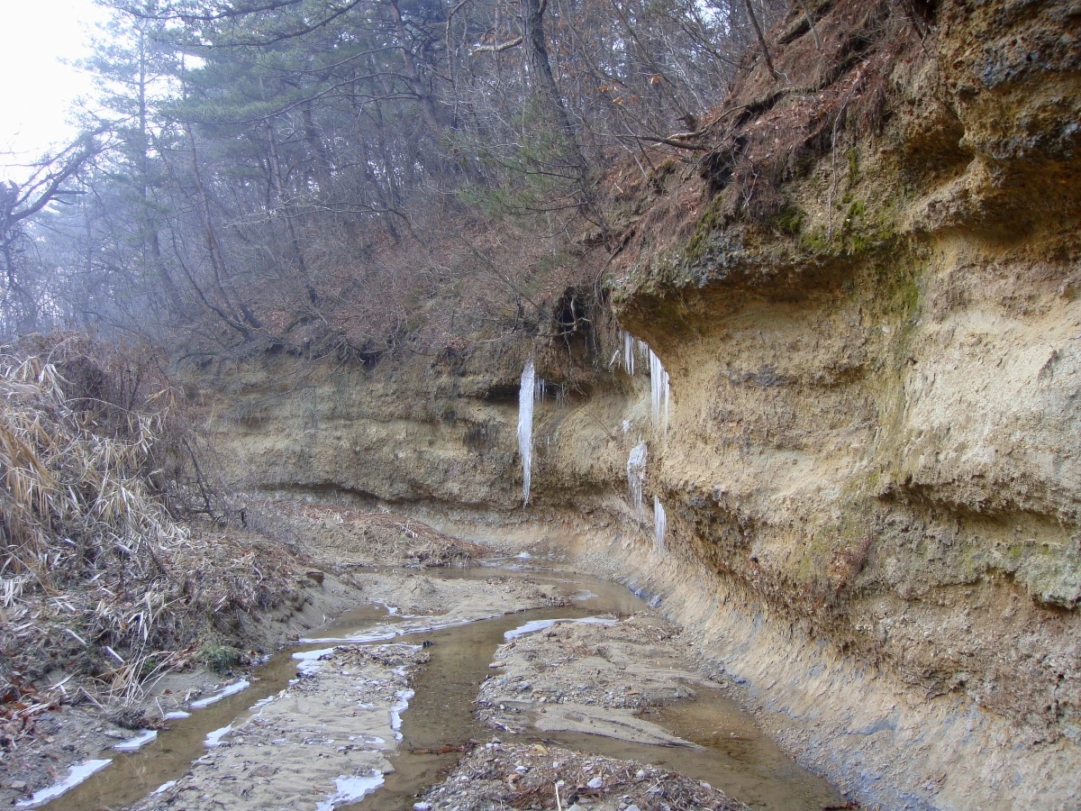 해빙과 더불어 지층 일부가 무너져 내렸습니다. 무너진 곳을 잘 찾으면 쉽게 화석을 찾을 수 있습니다만, 아쉽게도 여기는 화석층이 없는 곳입니다.