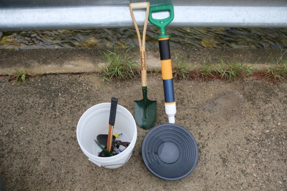 지극히 세속적인 인간인 필자는 금에 눈이 먼 나머지 창고를 뒤지기 시작했습니다. 플라스틱 버킷, 패닝접시, 석션기, 삽, 꽃삽, 괭이 등 사금 탐사의 필수 장비를 찾아 차에 실었습니다.